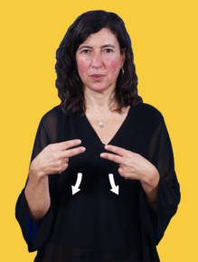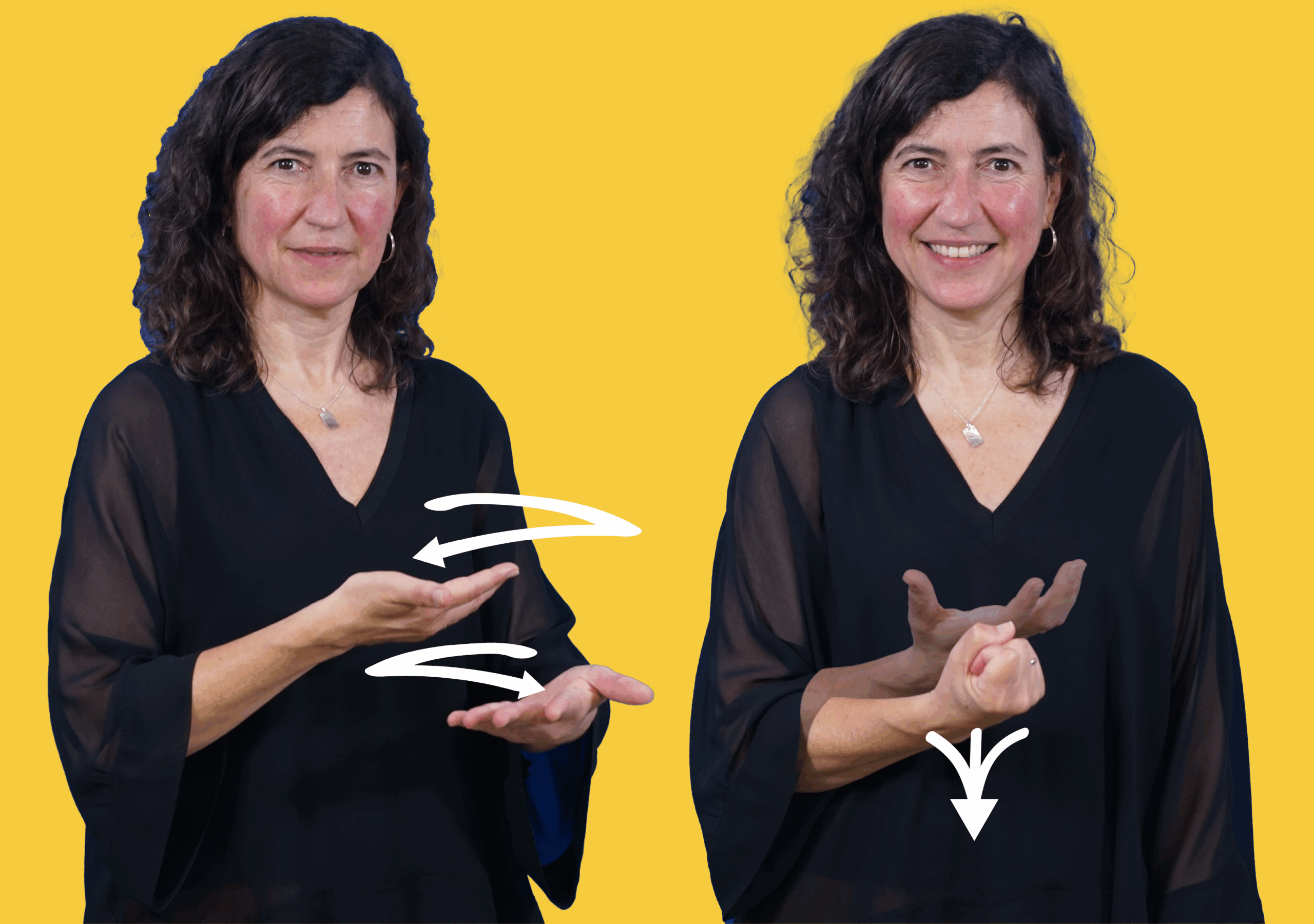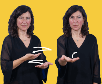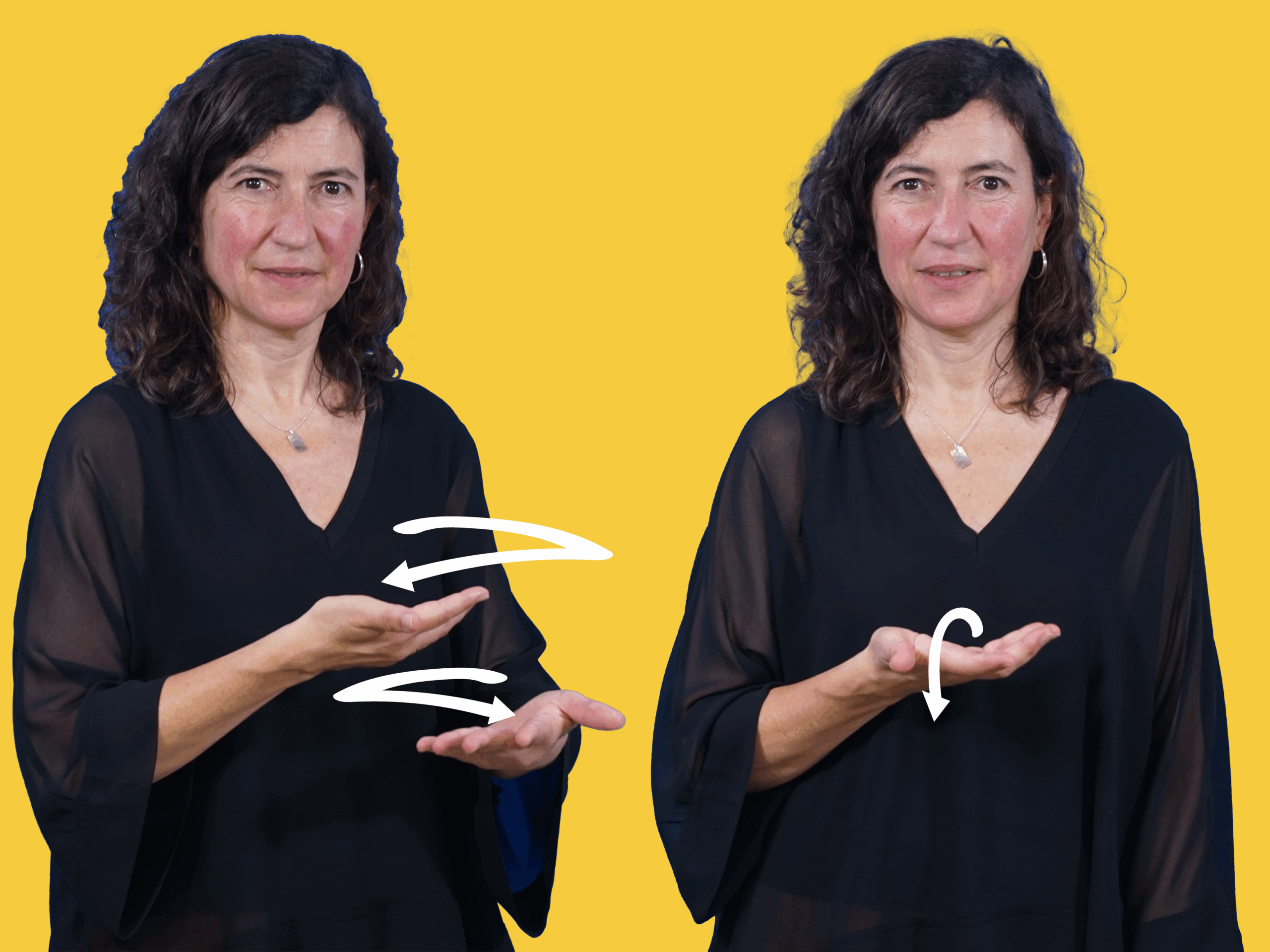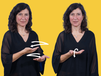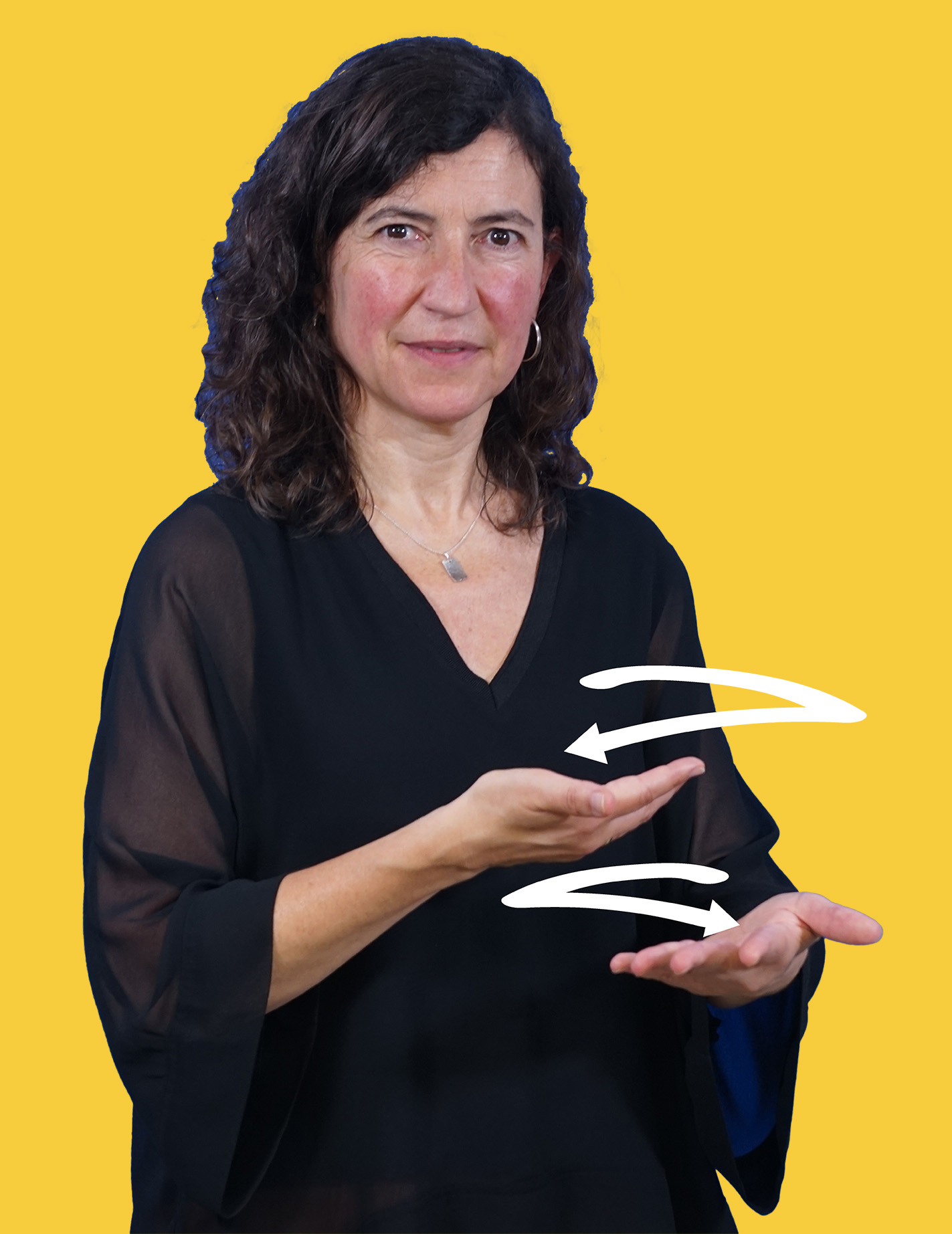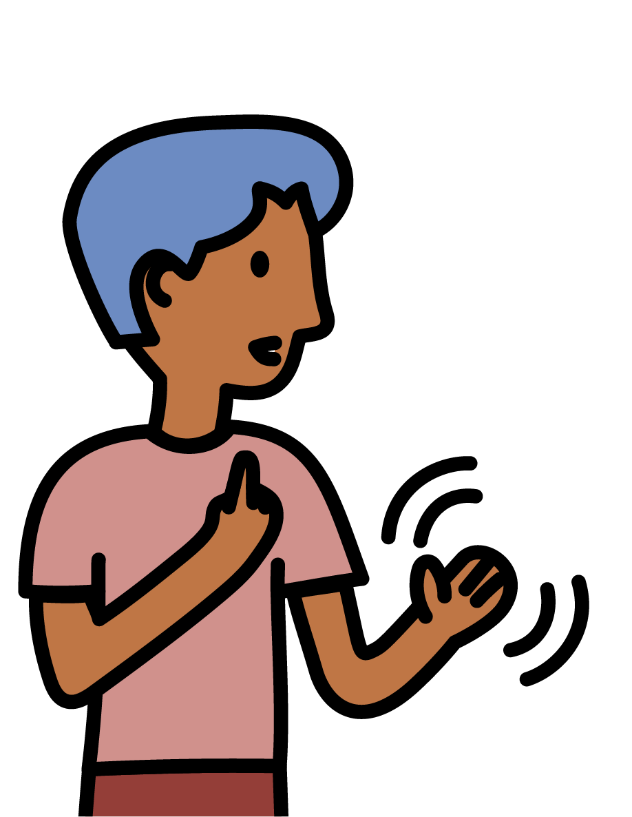 Eine Person gebärdet etwas. Das nennt man einen Gesprächsbeitrag. Die Person, die gebärdet, nennt man auch Sender.