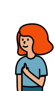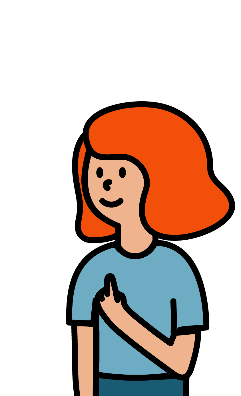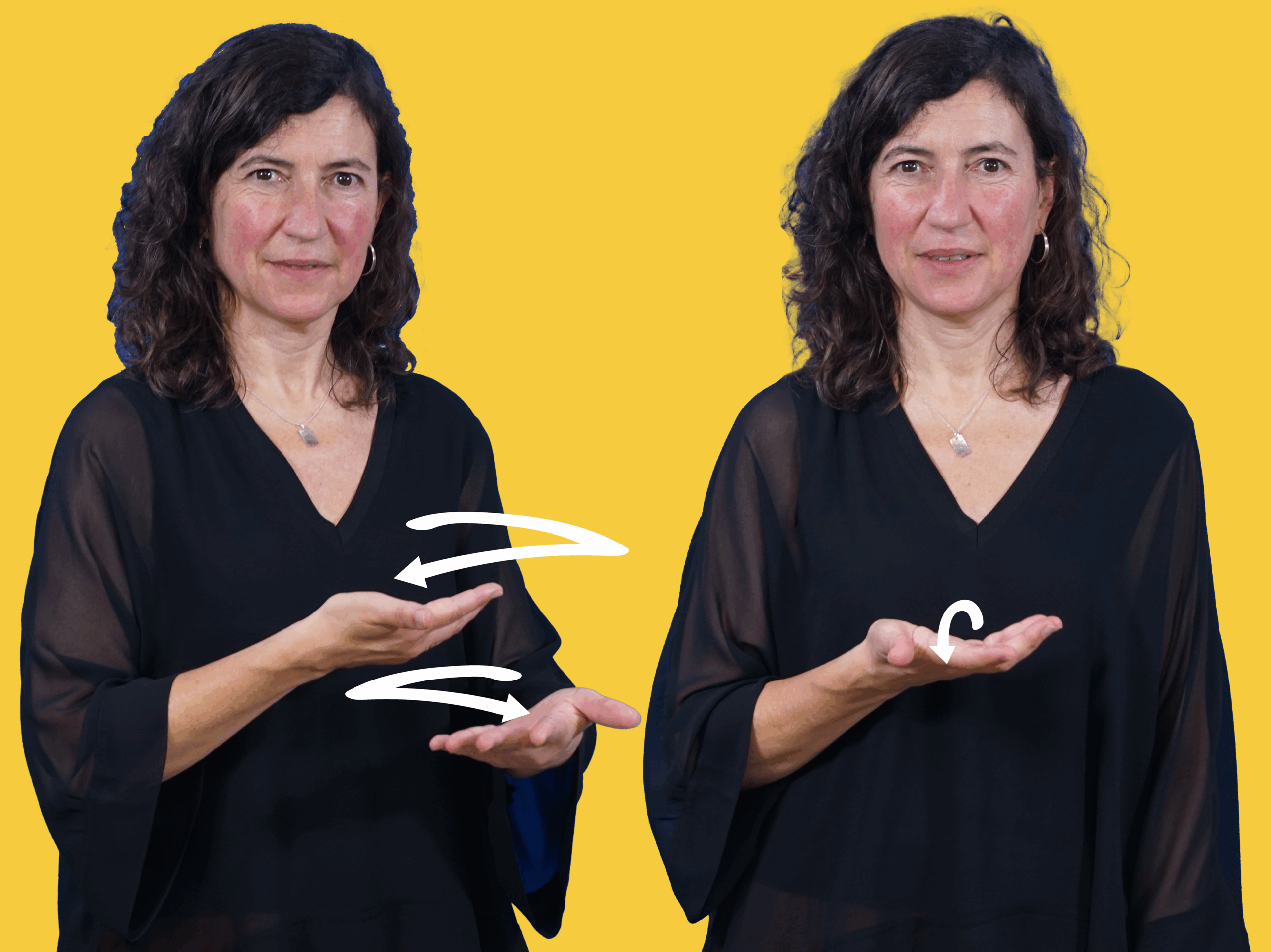 • Der Sender macht ein Signal mit einer Hand, dass er noch weiter gebärden möchte. Zum Beispiel hebt der Sender den Zeigefinger oder gebärdet MOMENT oder WARTEN.