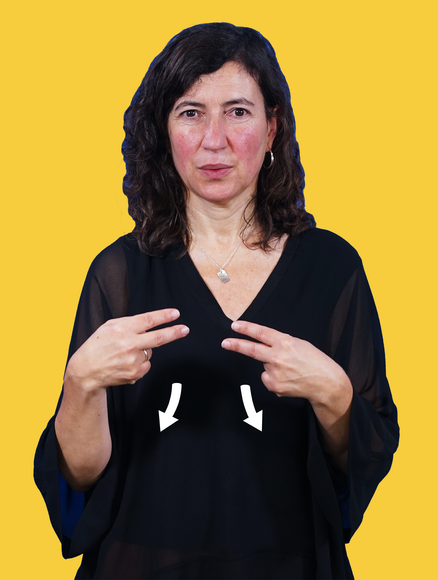 • Der Sender zeigt mit der Index-Hand oder der B-Hand auf den Empfänger und hebt dabei die Augenbrauen.