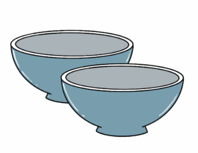 Wenn man die Gebärde SCHÜSSEL wiederholt, drückt man aus, dass es mehrere Schüsseln sind.