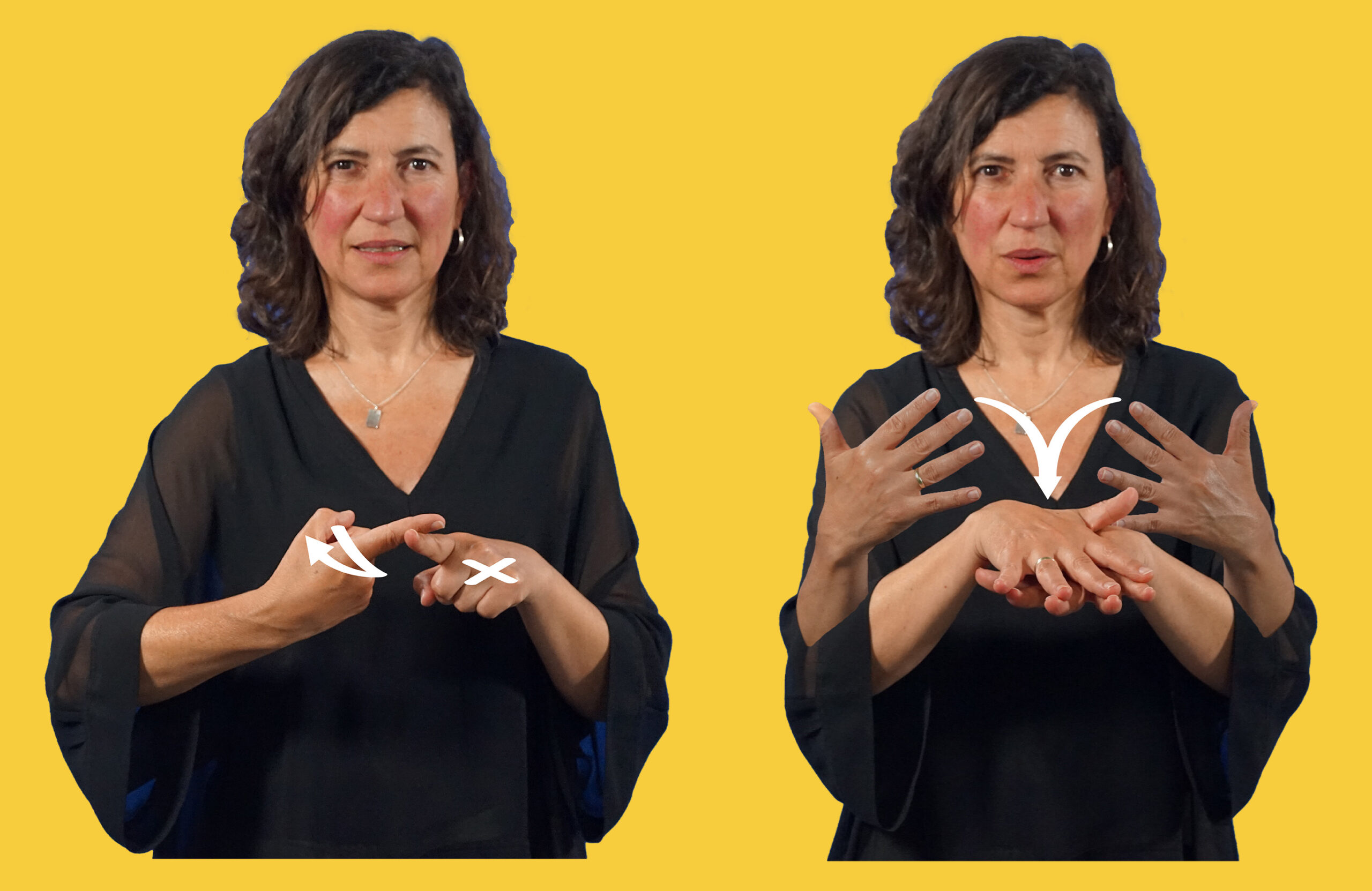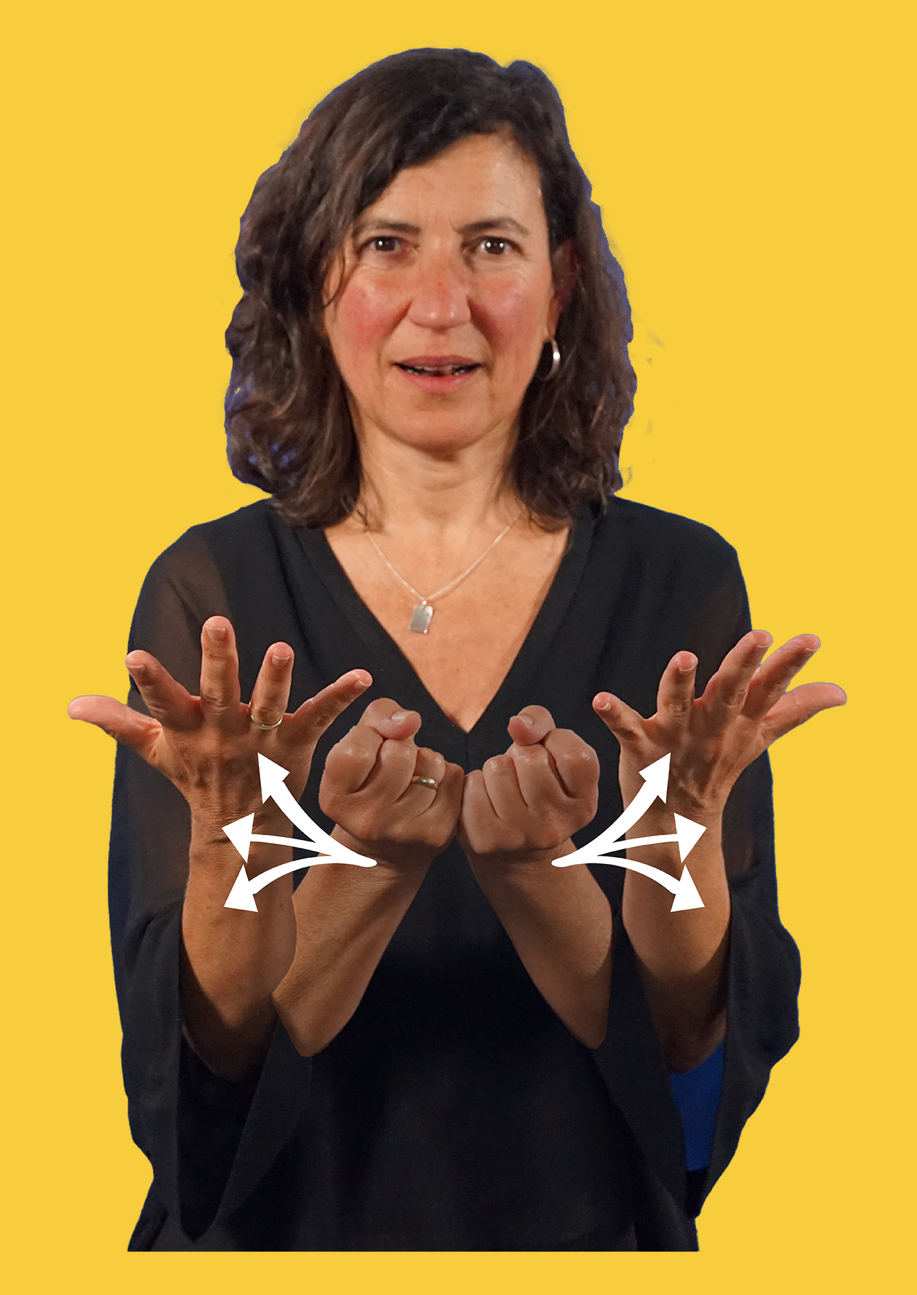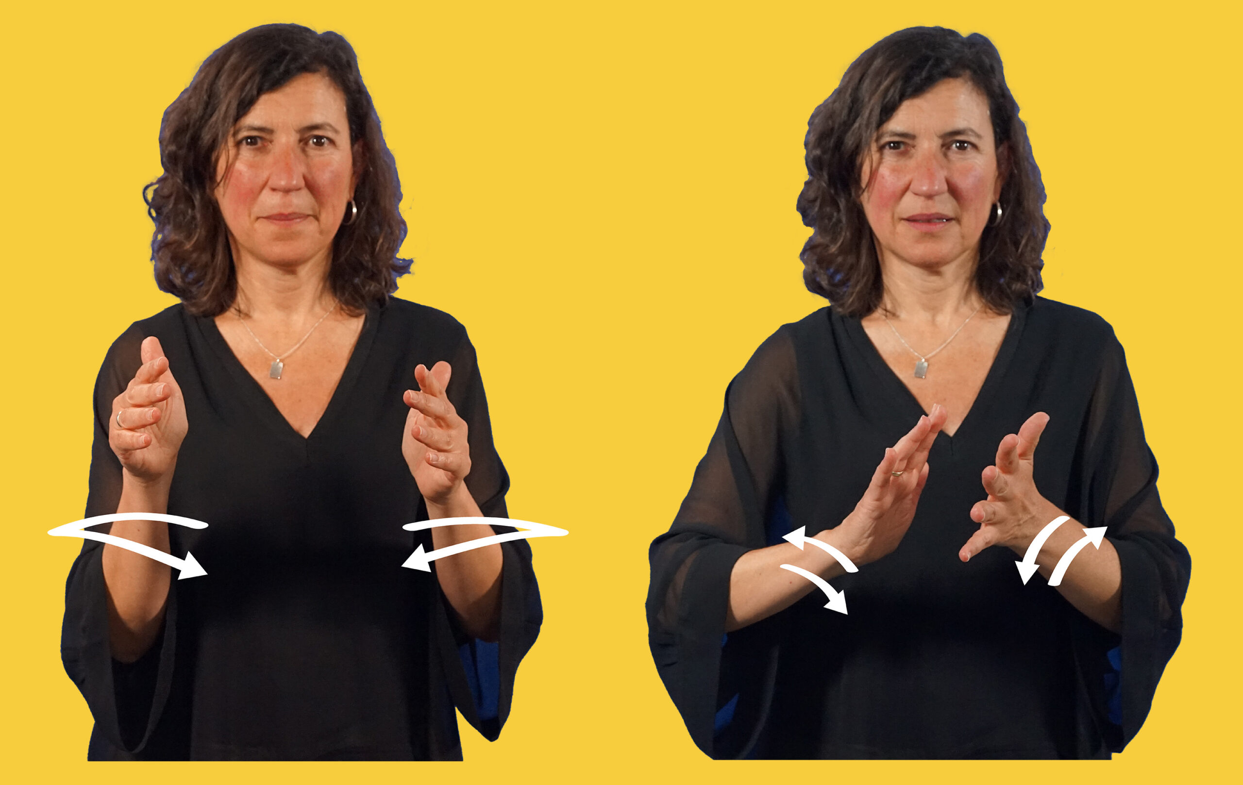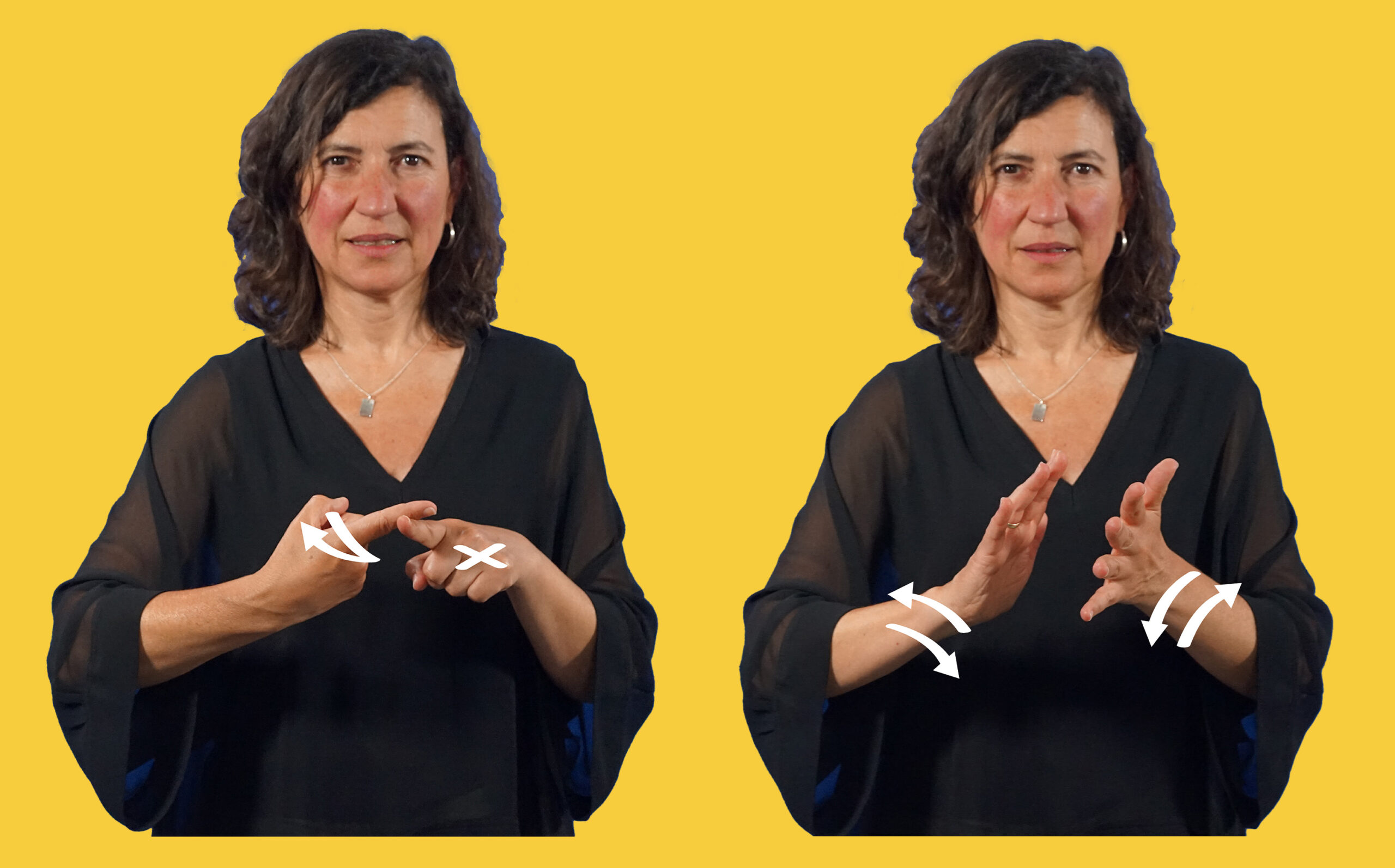 2. Die Gebärde wird mit einer Seitwärts-Bewegung wiederholt.