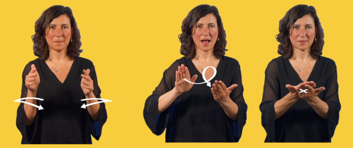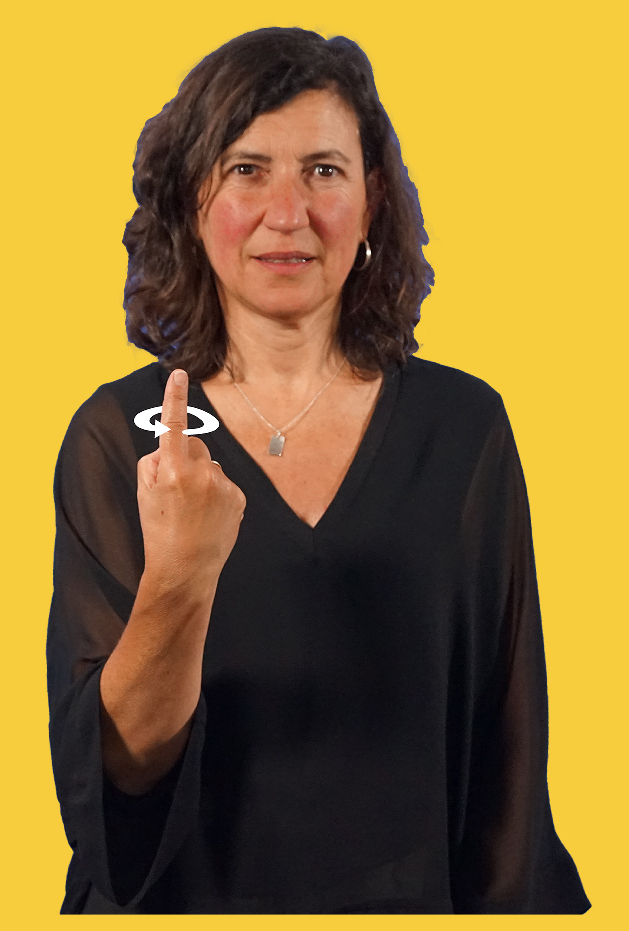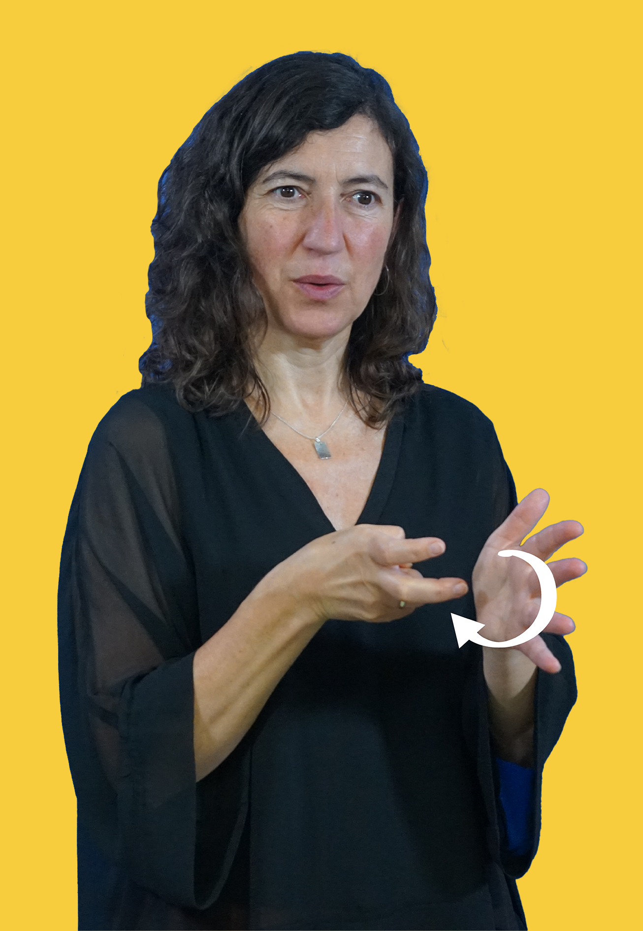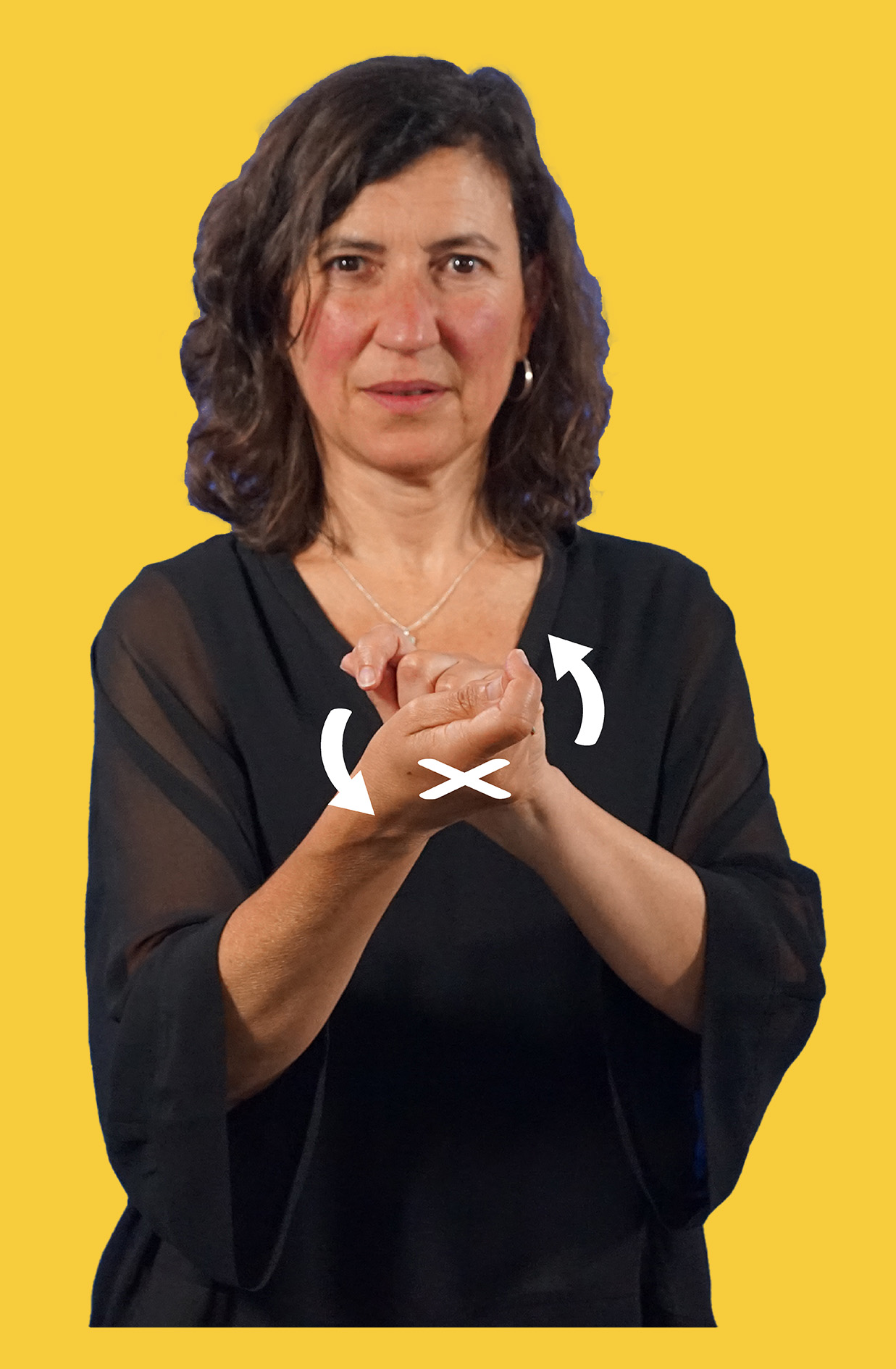 2. Die Gebärde wird mit einer Seitwärts-Bewegung wiederholt.