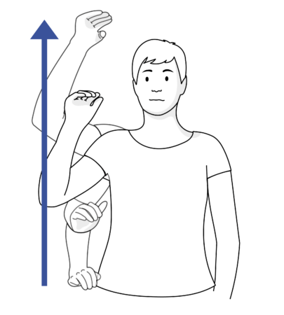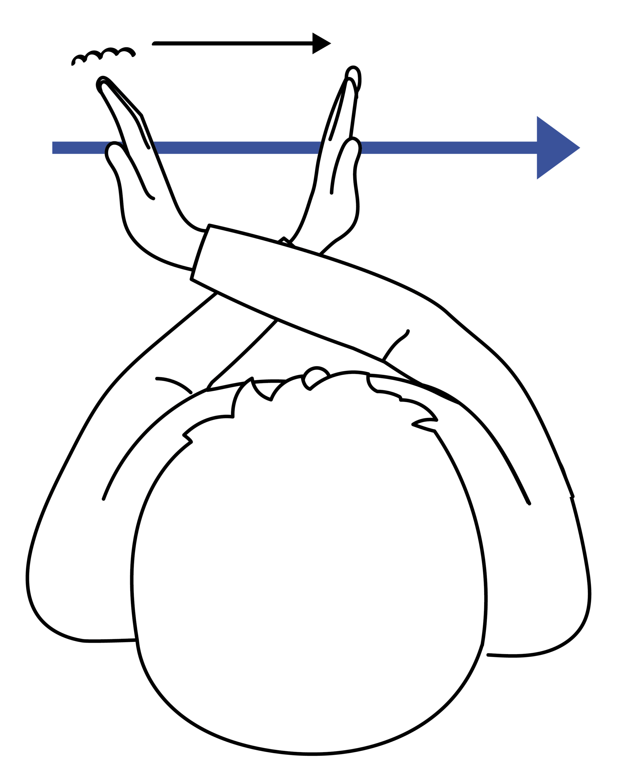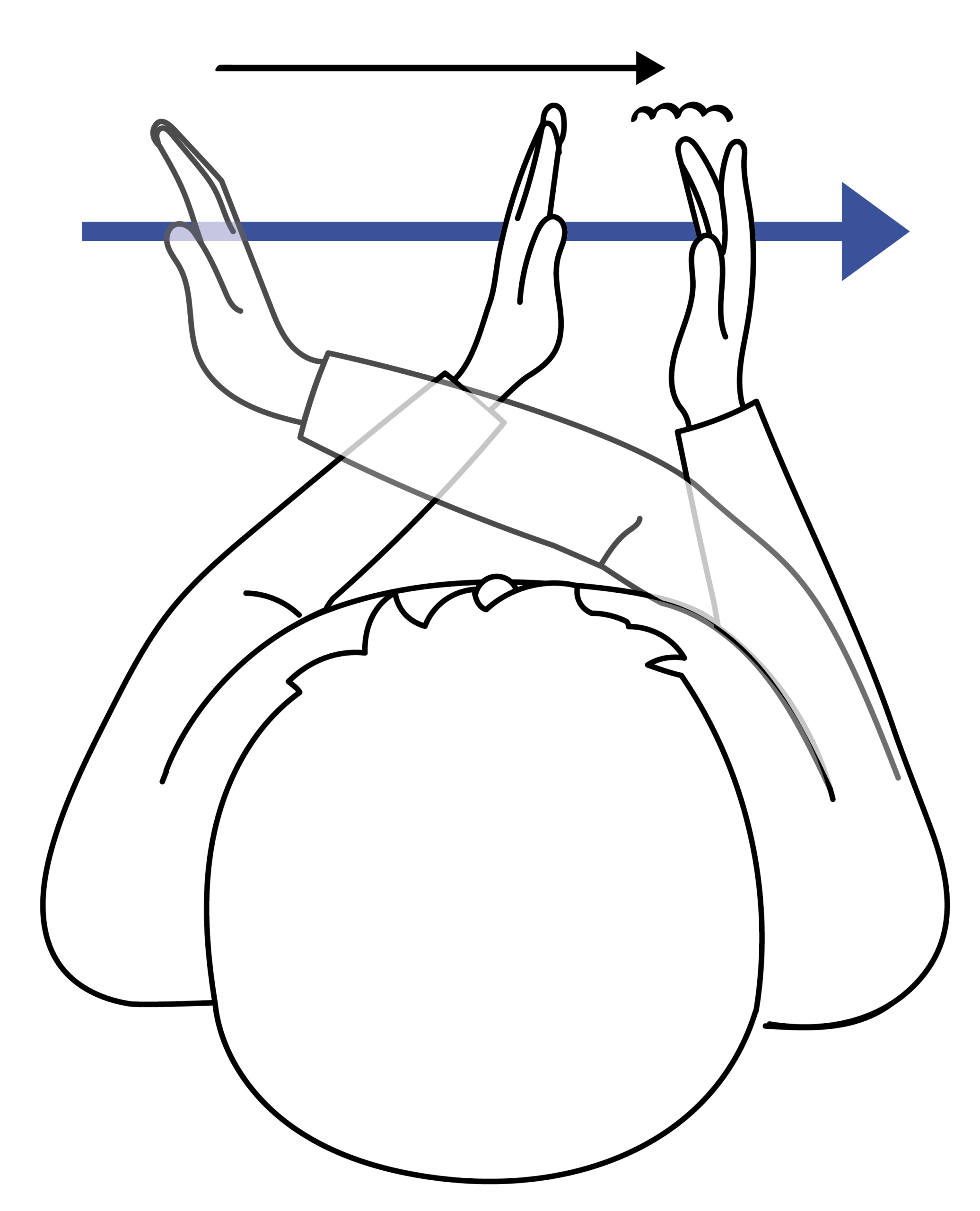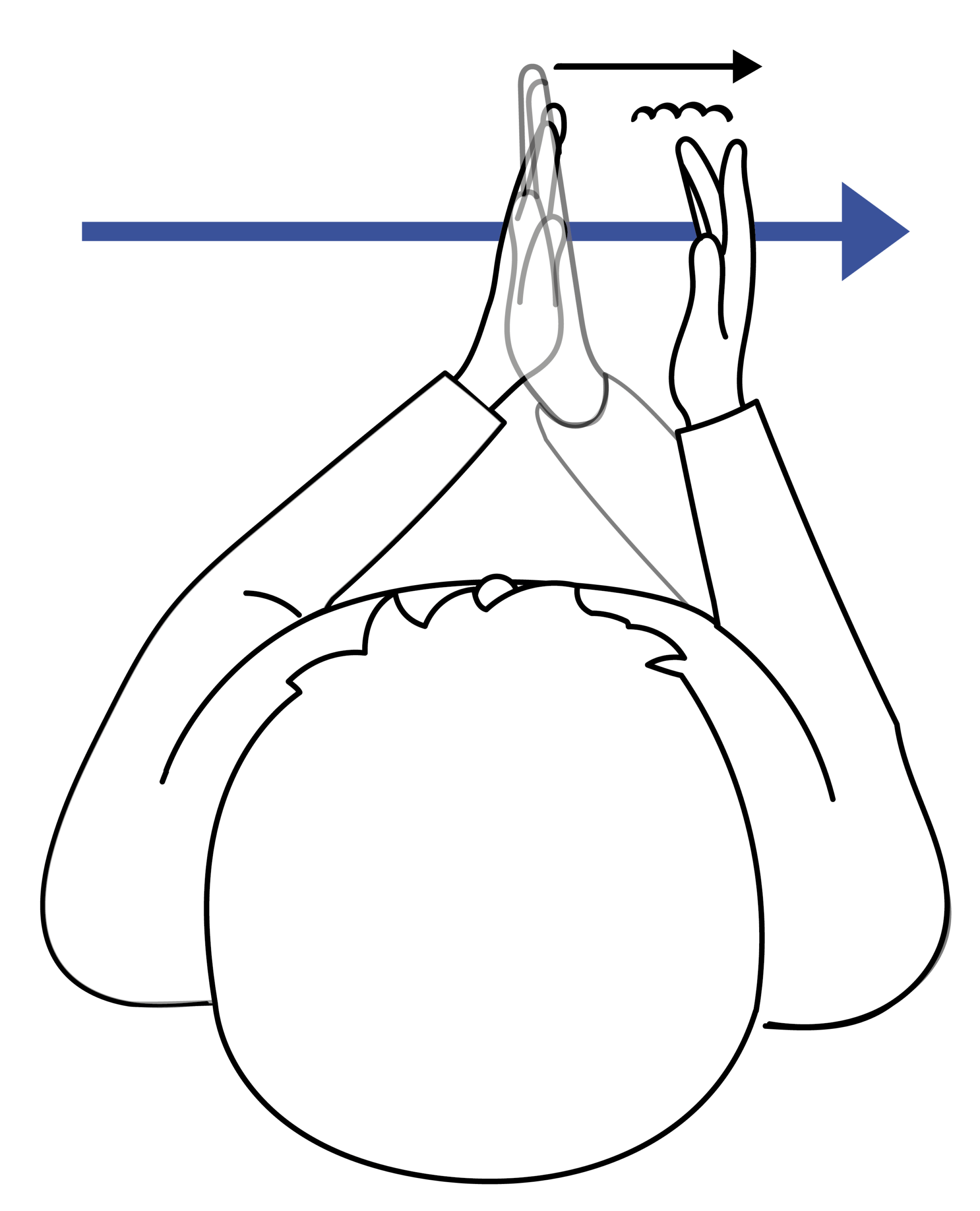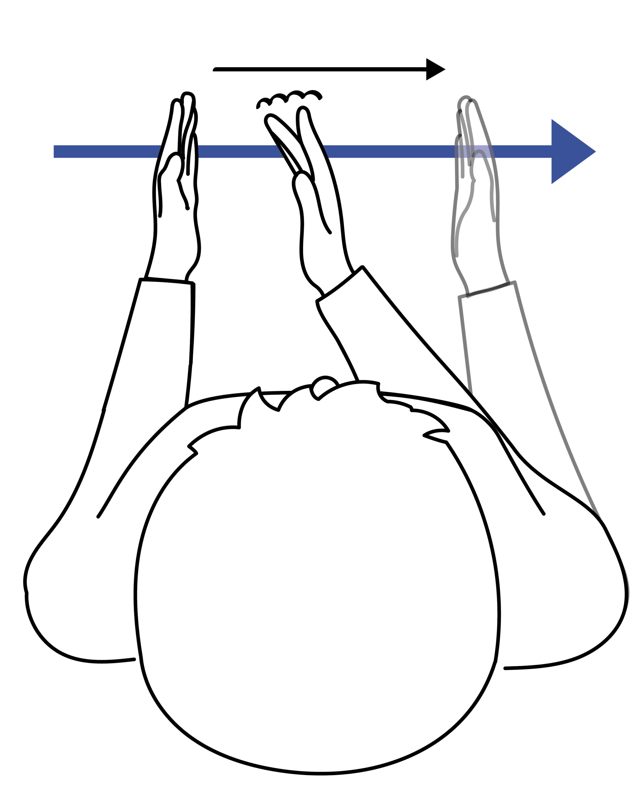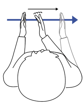 Die sagittale Zeitlinie verläuft von der Schulter der dominanten Hand bis in den Gebärdenraum vor dem Oberkörper.