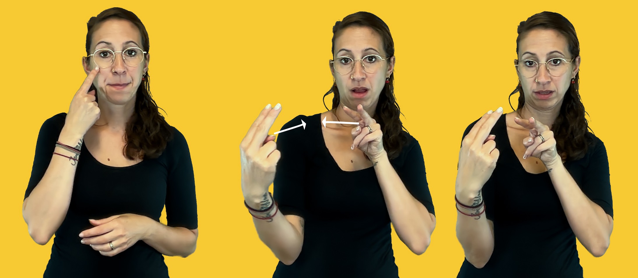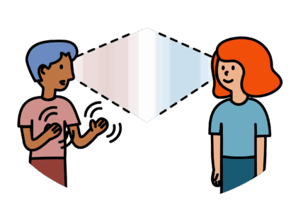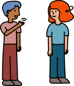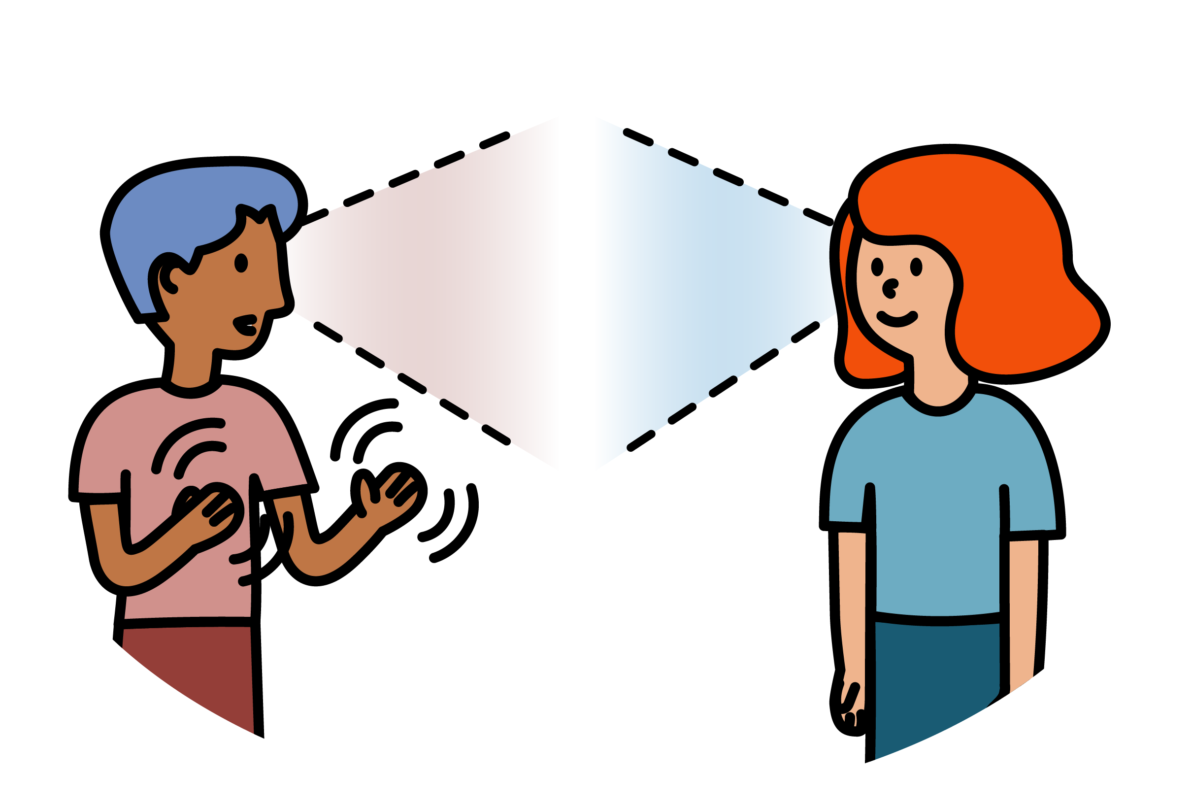 Die zweite Person schaut der gebärdenden Person zu. Die Person, die zuschaut, nennt man auch Empfänger.