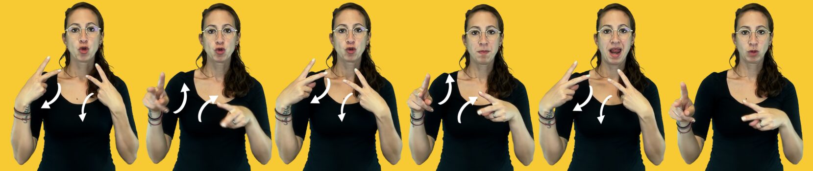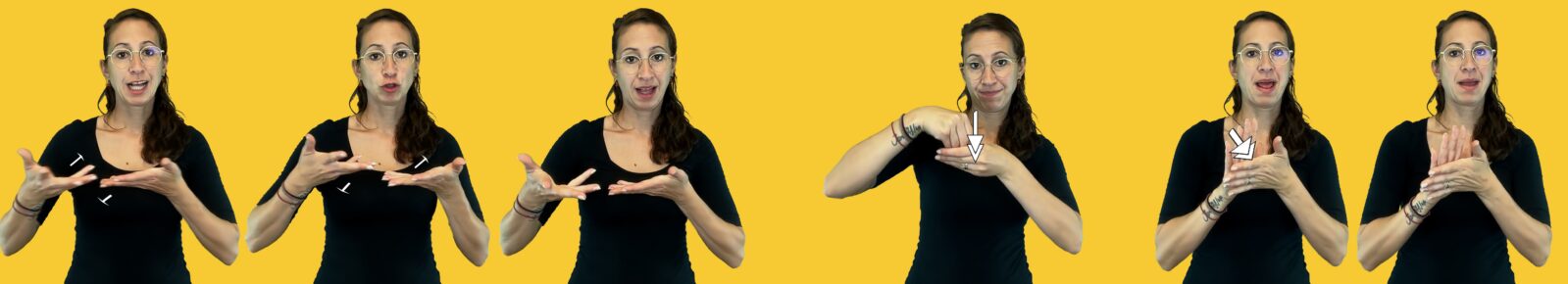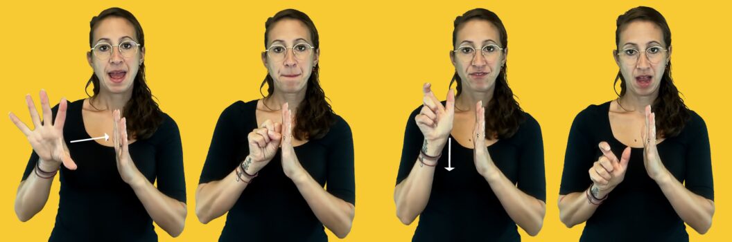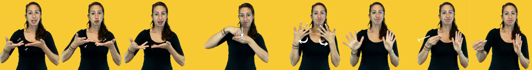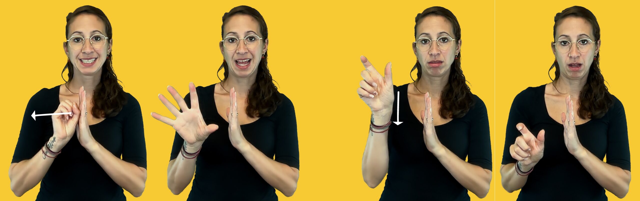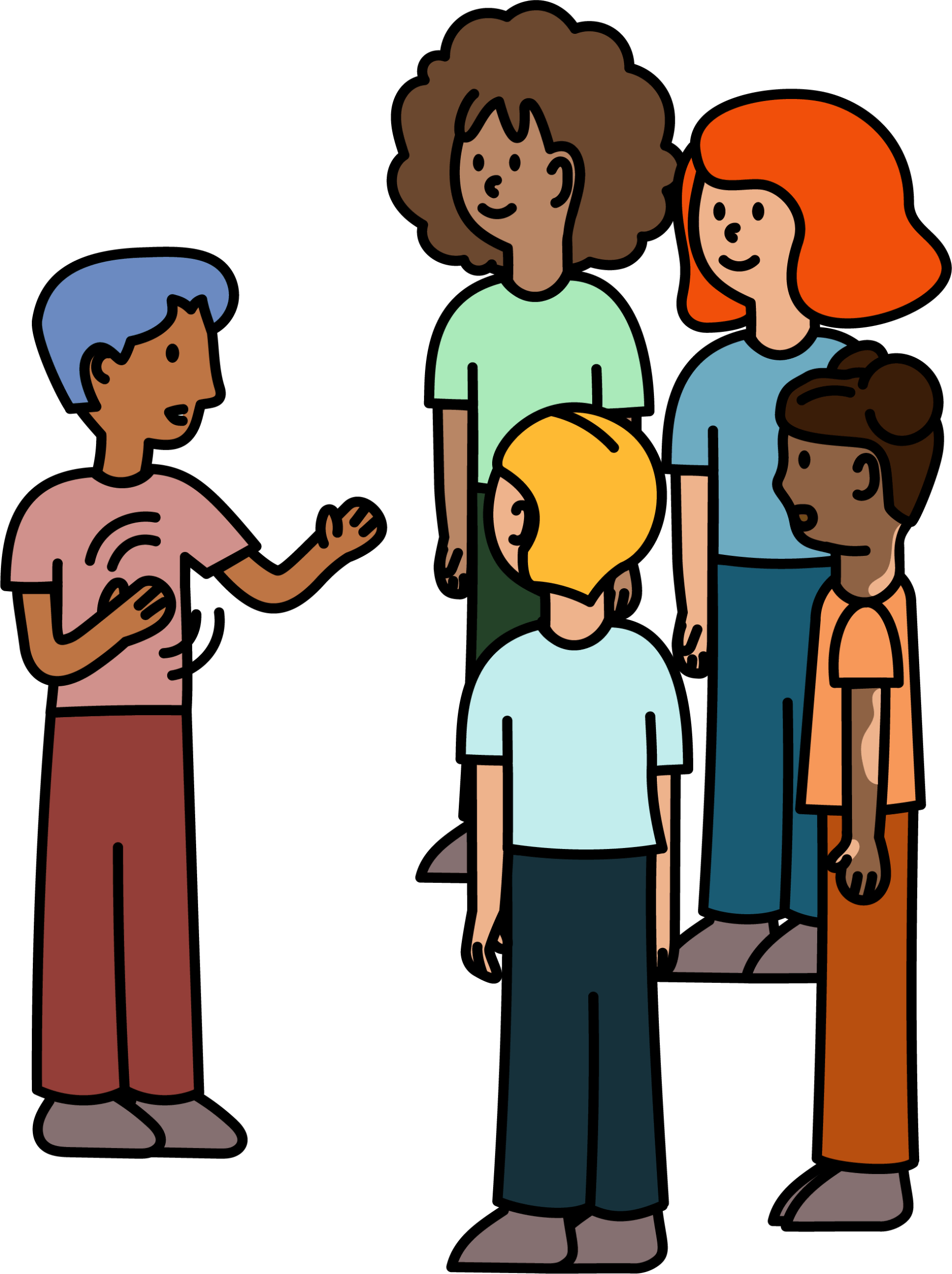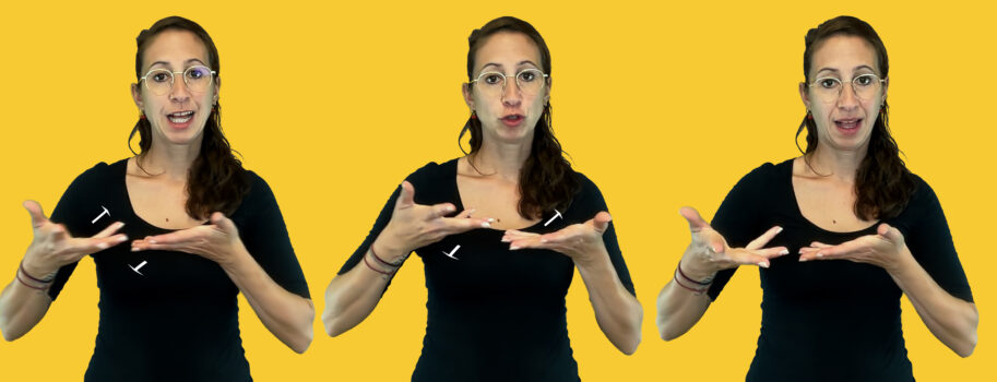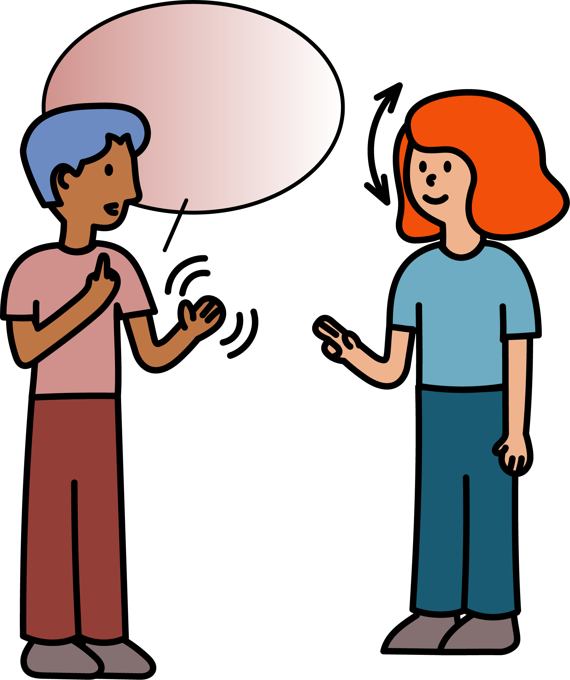 Eine Person gebärdet etwas. Das nennt man einen Gesprächsbeitrag. Die Person, die gebärdet, nennt man auch Sender.