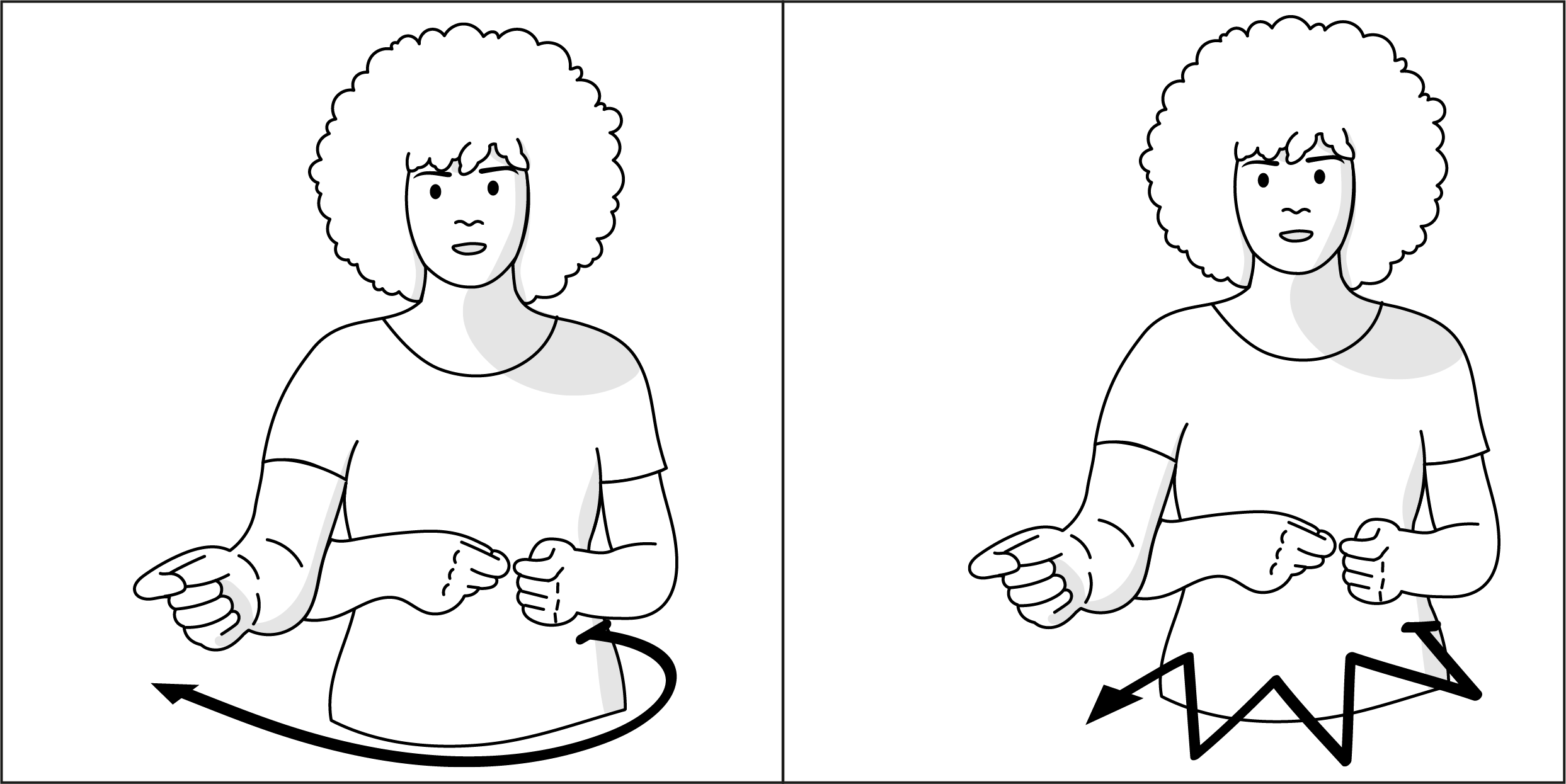 2. Die Gebärde wird mit einer Seitwärts-Bewegung wiederholt.