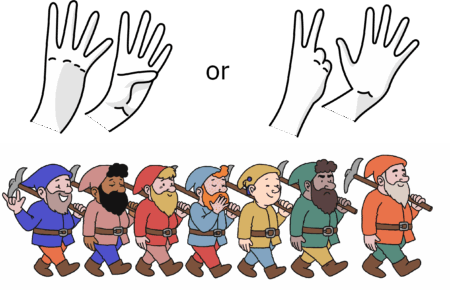 - If you want to emphasise that there are exactly seven dwarfs, you can also use exactly seven fingers. Each finger then stands for a dwarf. To do this, you combine the
