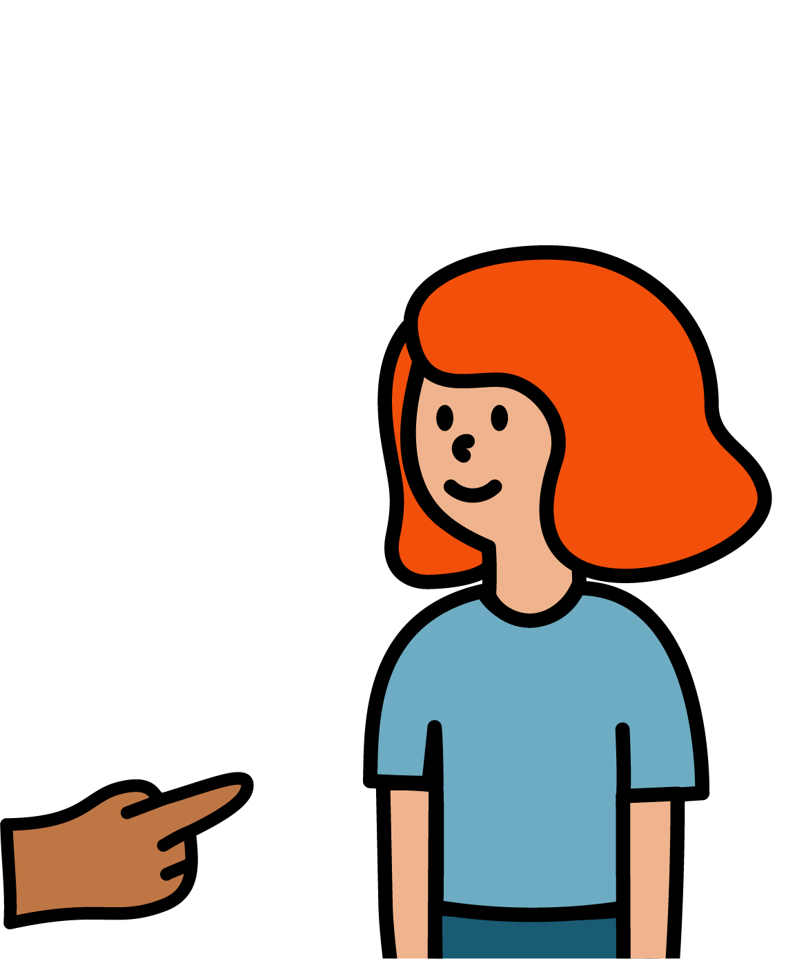 • Il mittente smette di segnare. Mantiene l’ultimo segno o abbassa leggermente le mani. Guarda il ricevente. Può anche assumere un’espressione facciale di richiesta o di domanda.