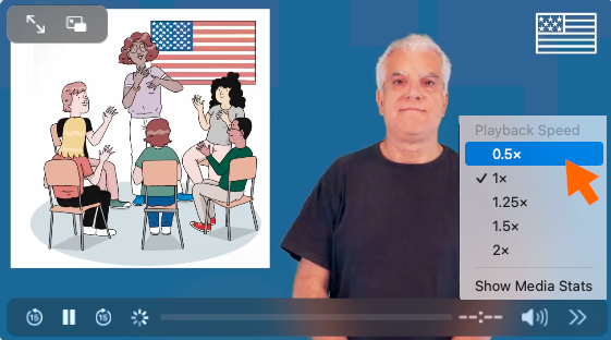= Permette la scelta tra le diverse lingue dei segni. Puoi anche passare da una lingua dei segni all’altra all’interno di una singola unità, ad esempio per comparare due diverse lingue segnate.