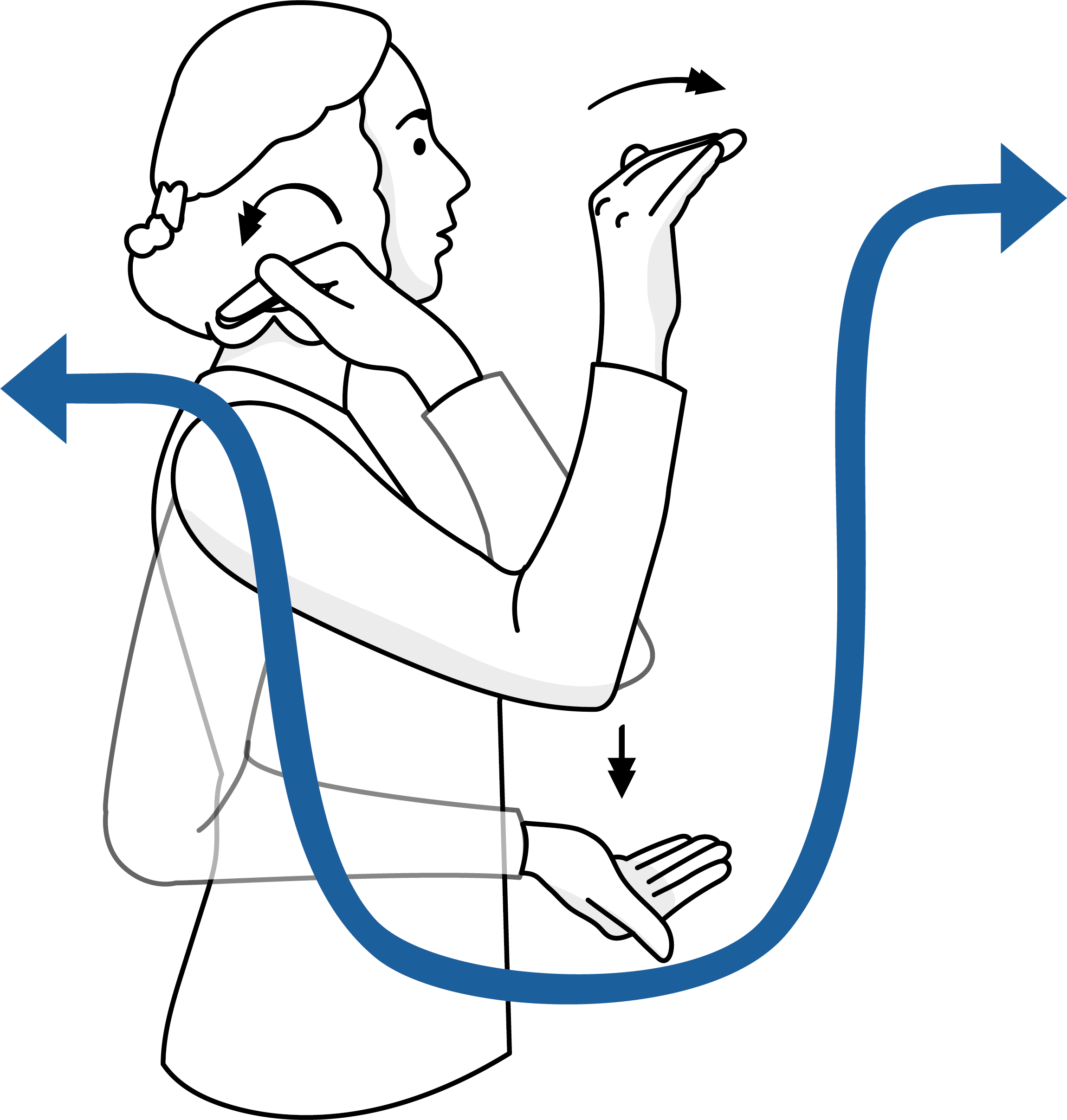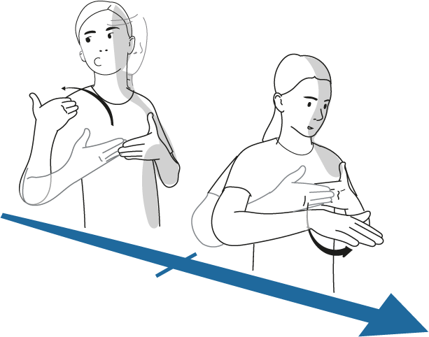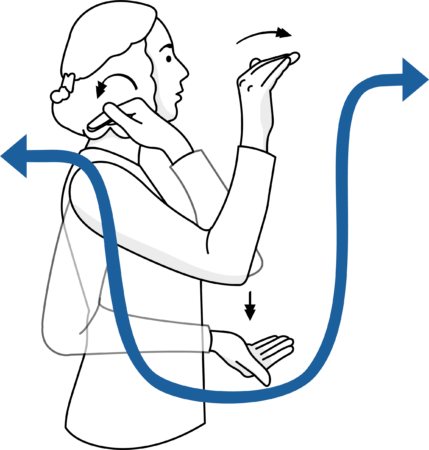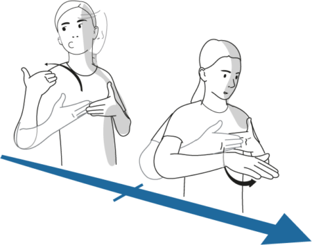 La linea temporale orizzontale è un’altra linea temporale utilizzata nello spazio per esprimere il tempo. La linea temporale orizzontale si trova nello spazio davanti al busto del segnante e si estende da un lato all’altro (a destra e a sinistra).