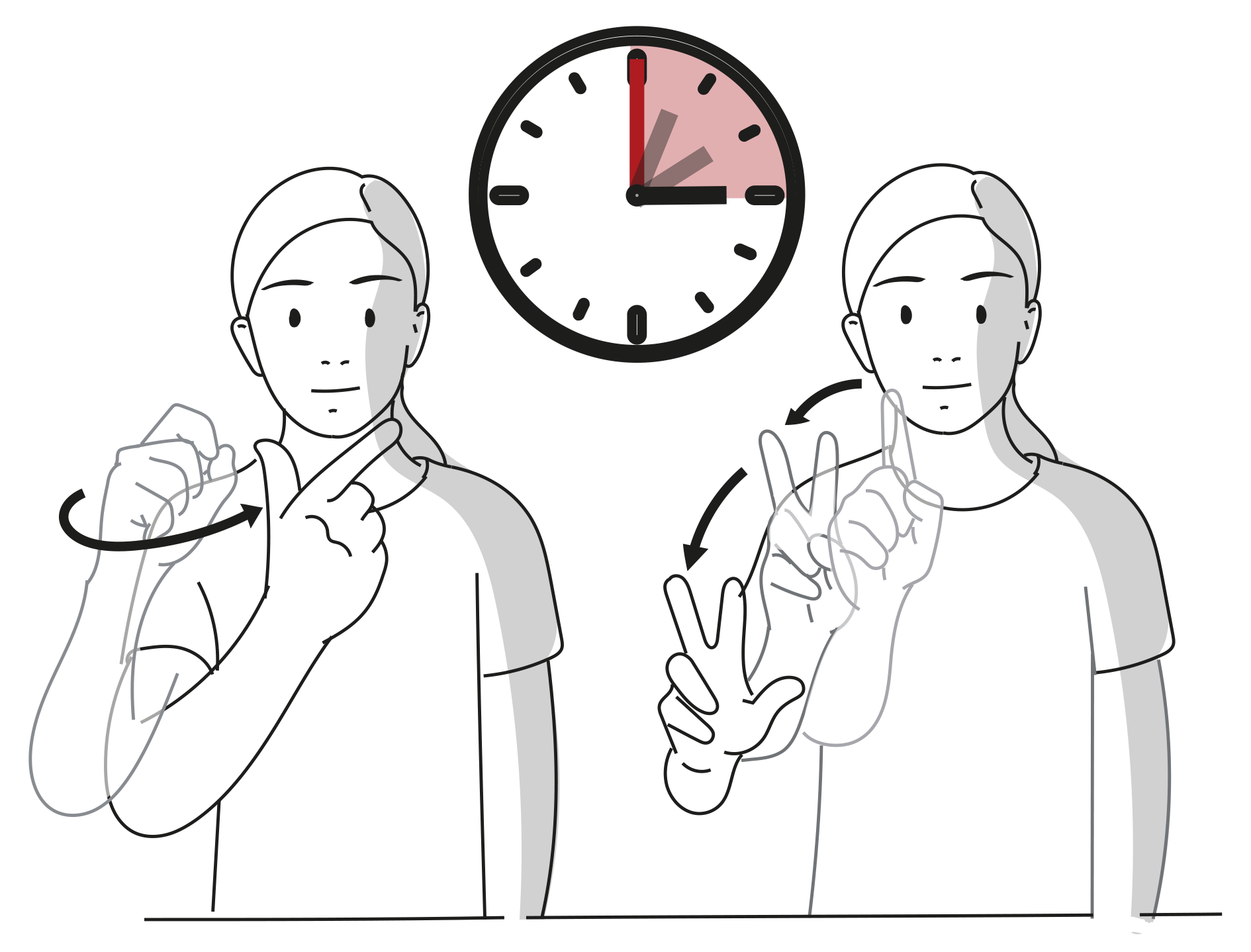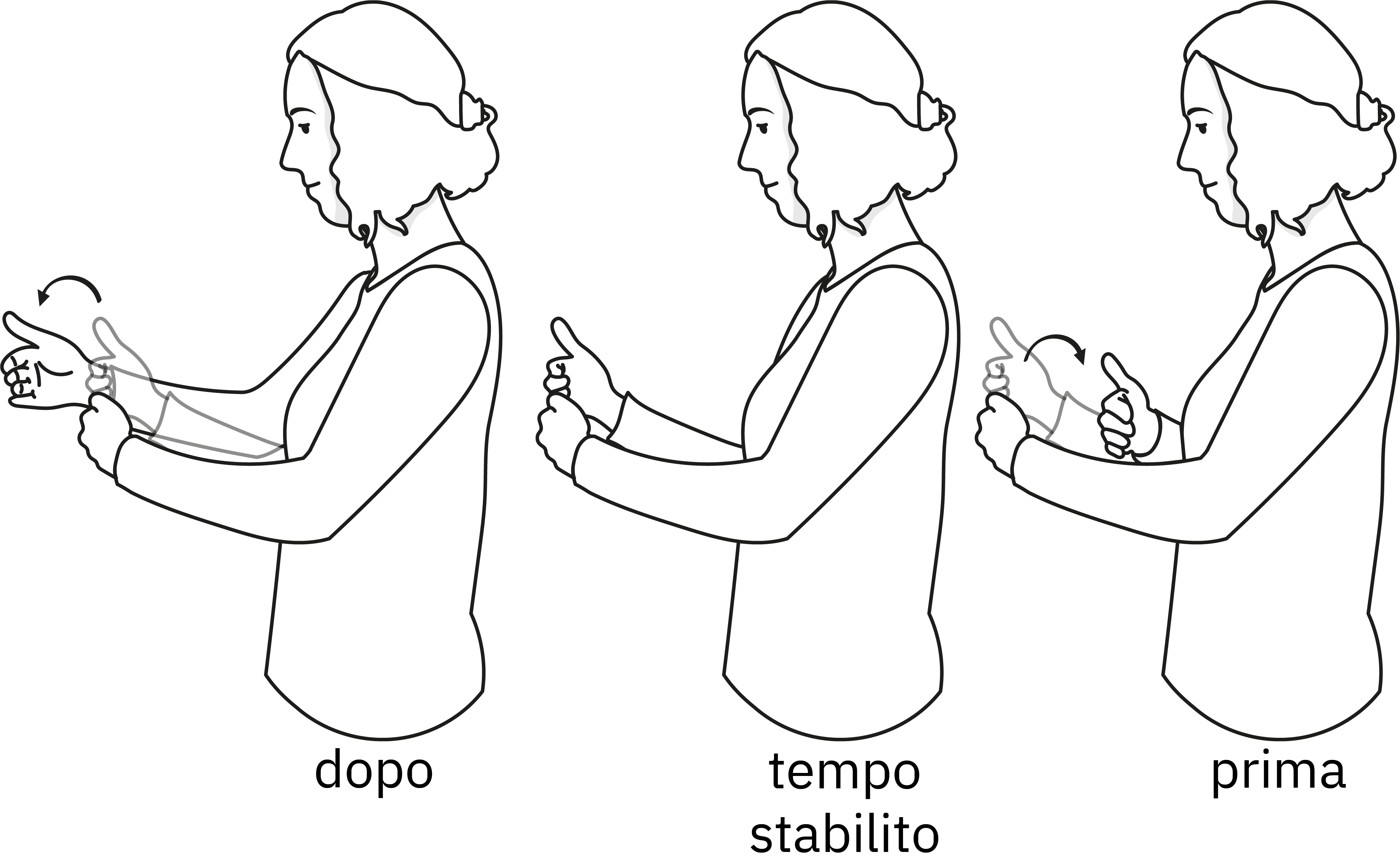 A volte le espressioni temporali possono essere segnate senza utilizzare una linea temporale. In questo caso l’espressione temporale viene segnata davanti al busto.