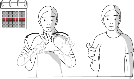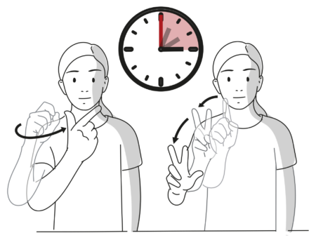 È possibile aggiungere numeri alle espressioni temporali per ora, giorno, mese e anno. La forma della mano nel segno indica un numero. Il numero indica quante ore, giorni, mesi o anni sono coinvolti. Ma questo è possibile solo con i numeri da 1 a 10, invece per i giorni solo da 1 a 5.