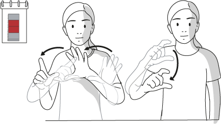 Può essere usata per esprimere che un evento ha luogo in un certo periodo di tempo. Per fare ciò, vengono prima individuati due punti nel tempo sulla linea temporale per definire il periodo di tempo. La mano non dominante imposta una boa. La mano dominante si sposta quindi dalla boa al secondo punto temporale definito. La mano dominante ha la configurazione G .