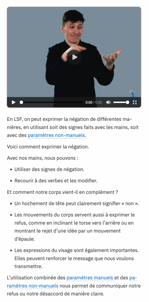 Toutes les explications sont également disponibles sous forme de traduction dans une langue écrite. Dans ces textes, il y a des hyperliens vers des termes techniques supplémentaires.
