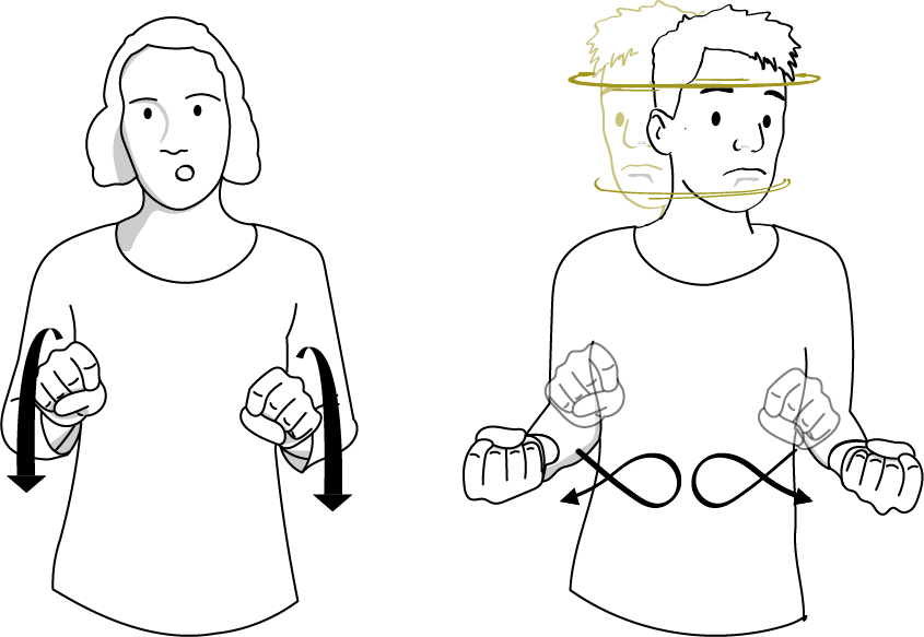 Au début de chaque thème, vous trouverez des histoires en langue des signes. Il s’agit de monologues ou de dialogues. Ces histoires contiennent des exemples de la vie quotidienne pour la fonction de communication et ses moyens linguistiques et culturels. Les histoires sont racontées par des signeurs sourds expérimentés et sont racontées dans un langage courant. Elles varient en difficulté et sont toutes illustrées.