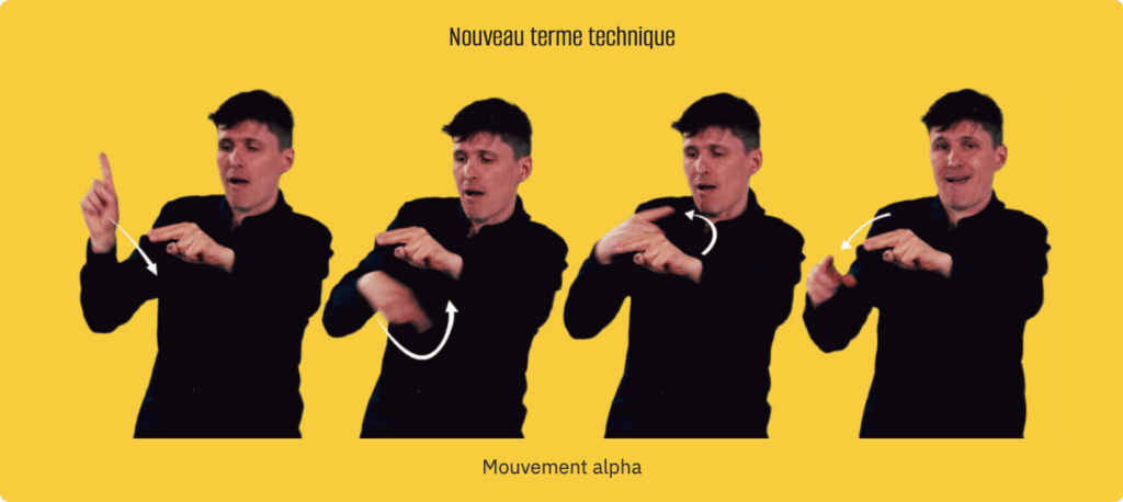 Explications = vidéos sur fond gris. Au premier plan se trouvent les explications signées.
