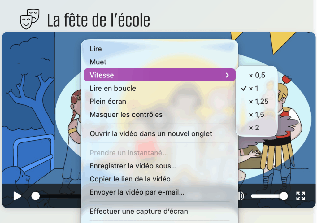 Vous pouvez lire les vidéos à différentes vitesses. Cela fonctionne différemment dans chaque navigateur. Vous trouverez ci-dessous des instructions en fonction du navigateur que vous utilisez, par exemple Firefox, Google Chrome et Safari.