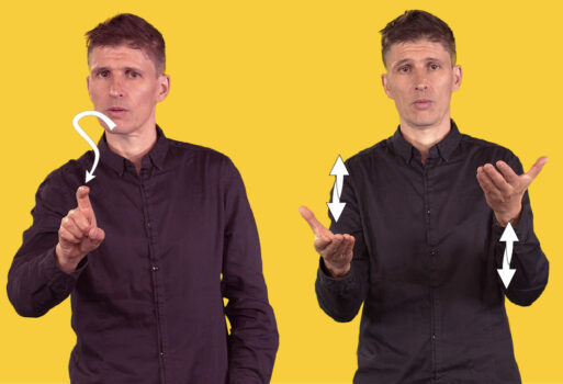 Afin de formuler ces différents types de questions, il faut utiliser l’expression faciale interrogative. L’expression faciale interrogative peut être combinée avec d’autres paramètres linguistiques tels que les signes interrogatifs.