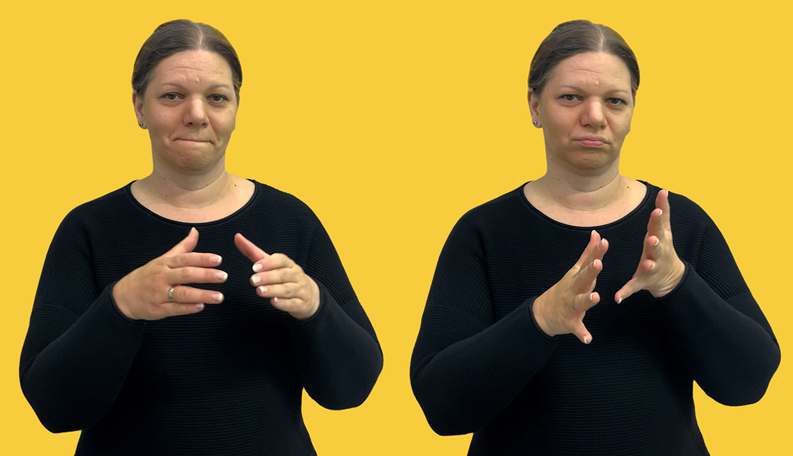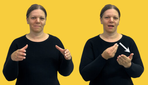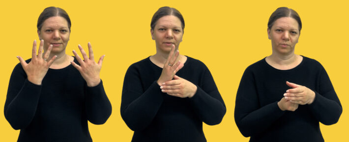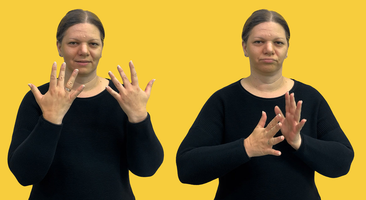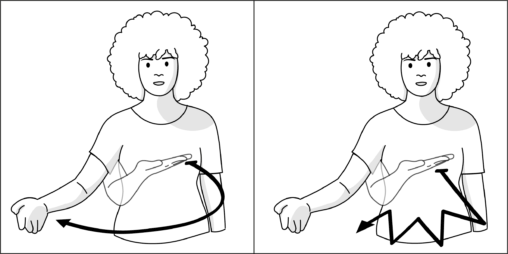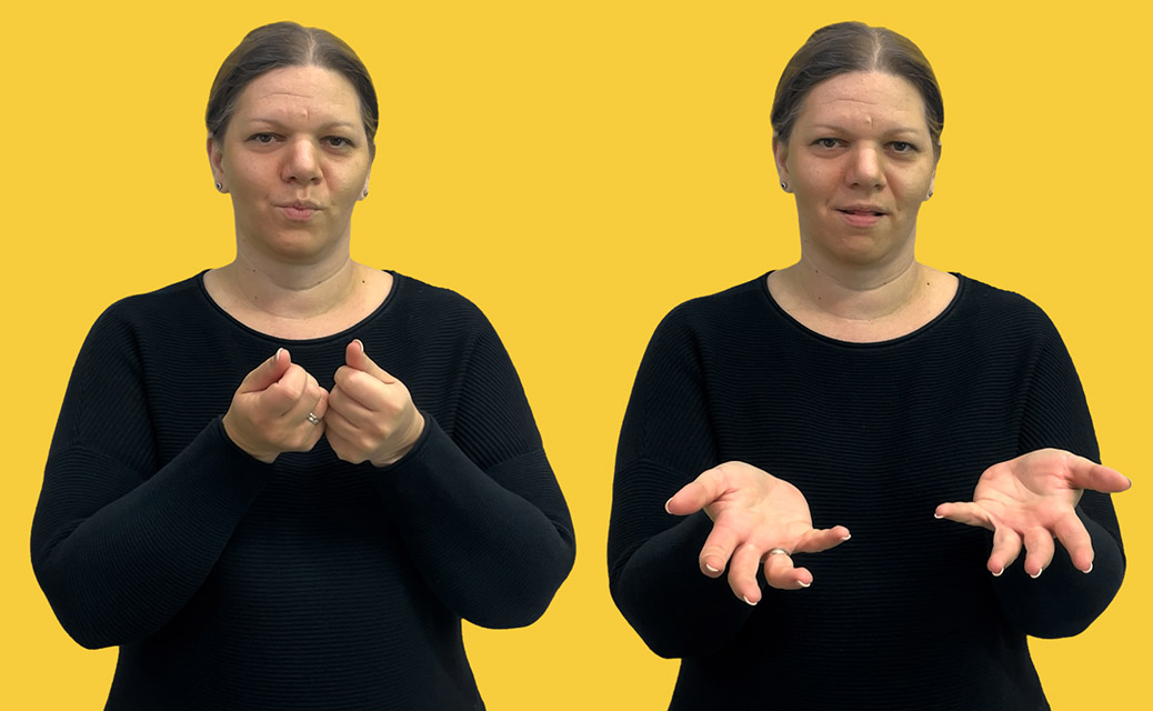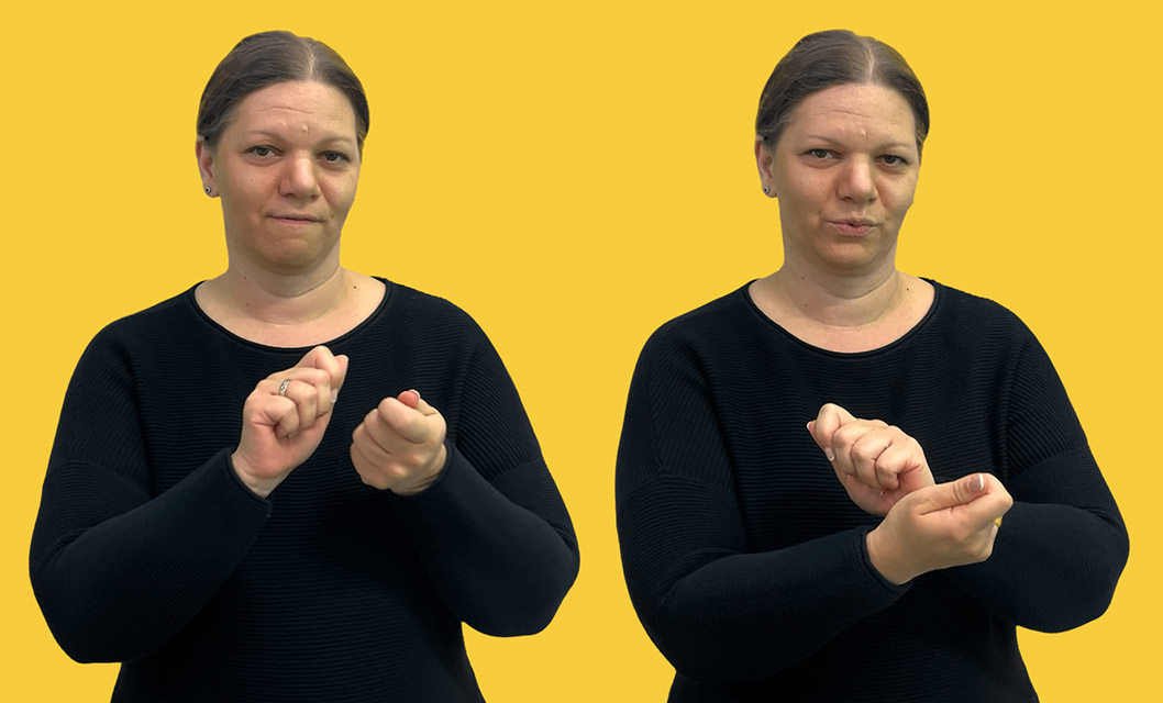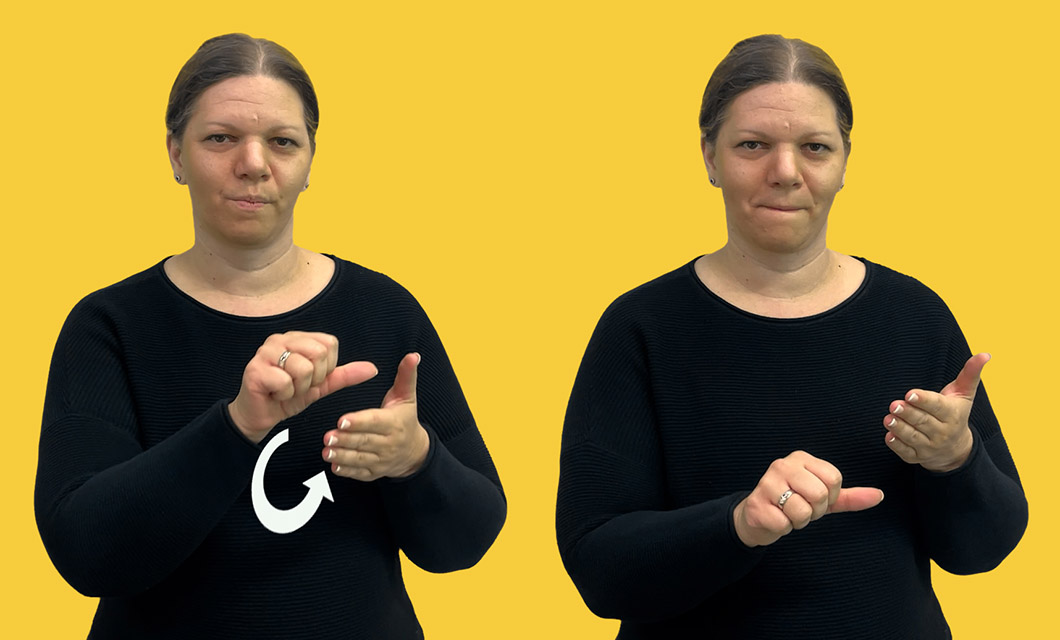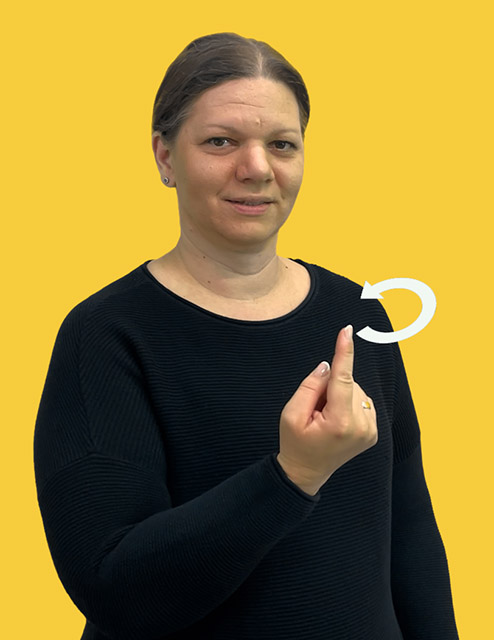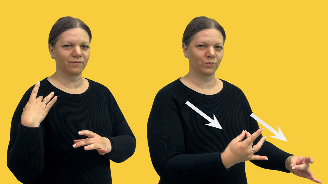 2. Die Gebärde wird mit einer Seitwärts-Bewegung wiederholt.