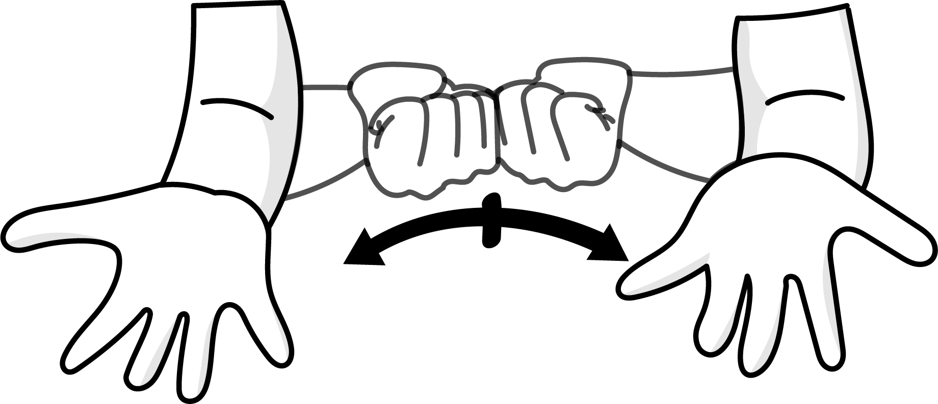 Die Gebärde wird gleichzeitig zweimal ausgeführt: Einmal mit der linken Hand und einmal mit der rechten Hand. Die Bewegung kann gleich oder auch alternierend ausgeführt werden.