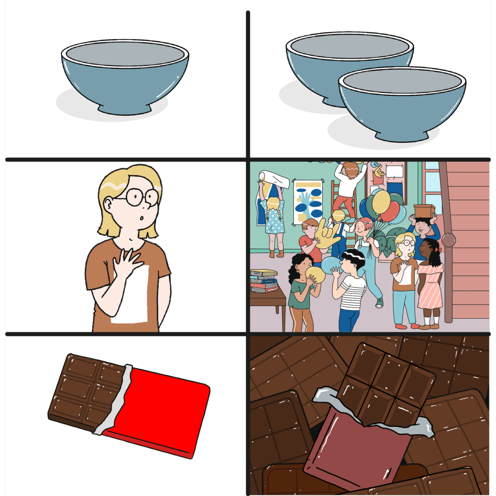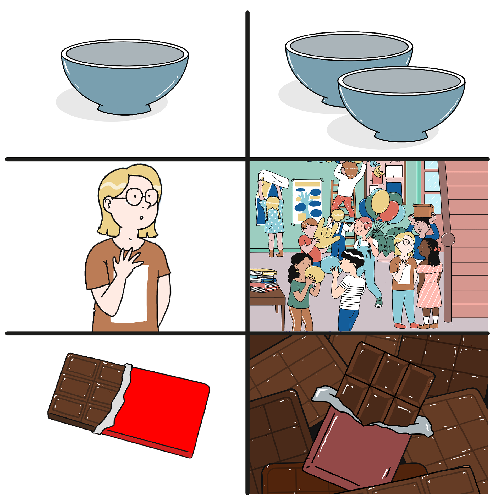 Man kann zum Beispiel über eine Schüssel, einen Schüler oder eine Tafel Schokolade berichten.