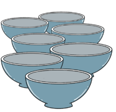 Die genaue Anzahl der Wiederholung kann aber auch die Anzahl der Schüsseln angeben. Die Gebärde wird dann an verschiedenen Orten ausgeführt.