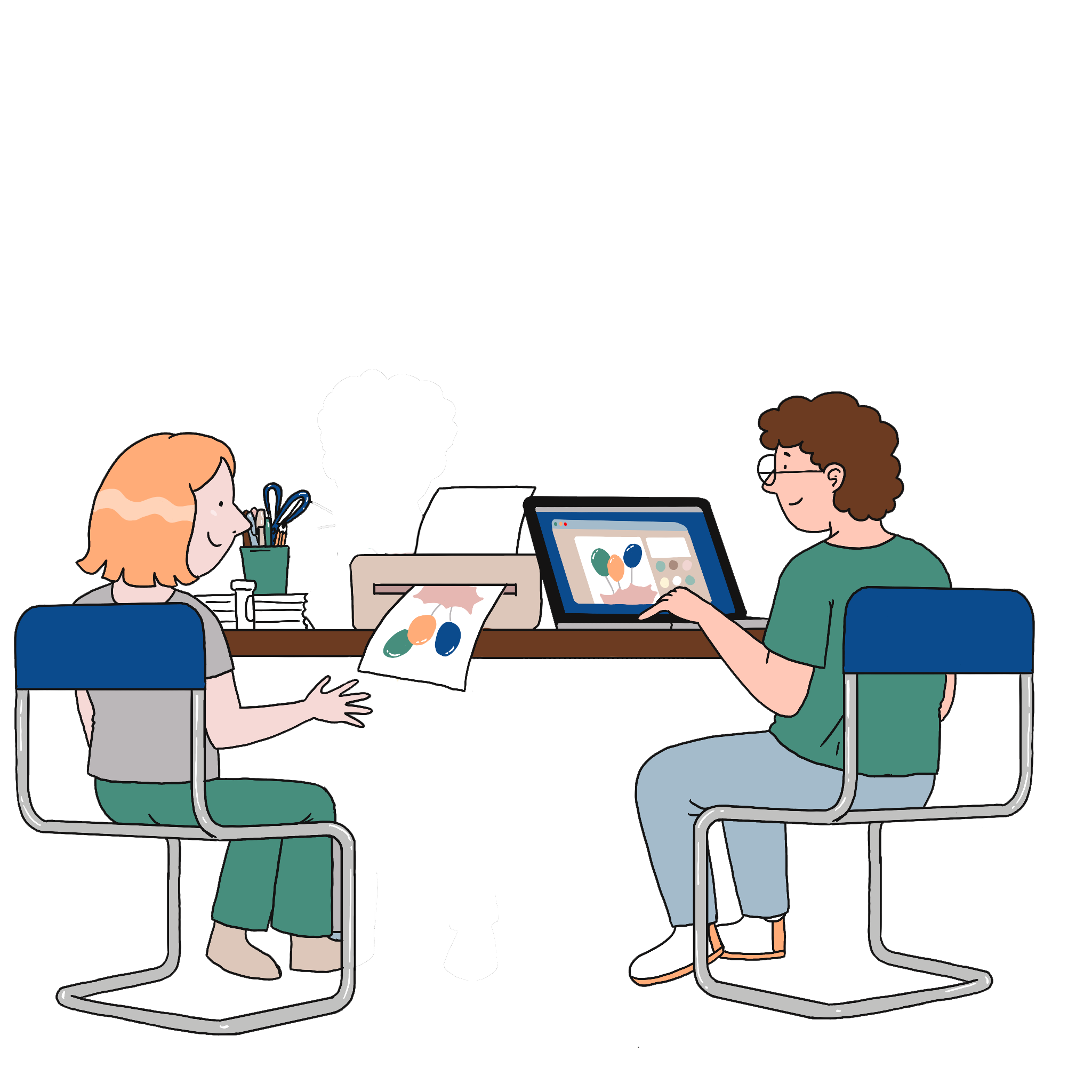 Die Gebärde GEBEN kann auch nacheinander an verschiedenen Orten im Gebärdenraum enden. Damit wird betont, dass jeder einzelne Schüler ein Papier bekommt.