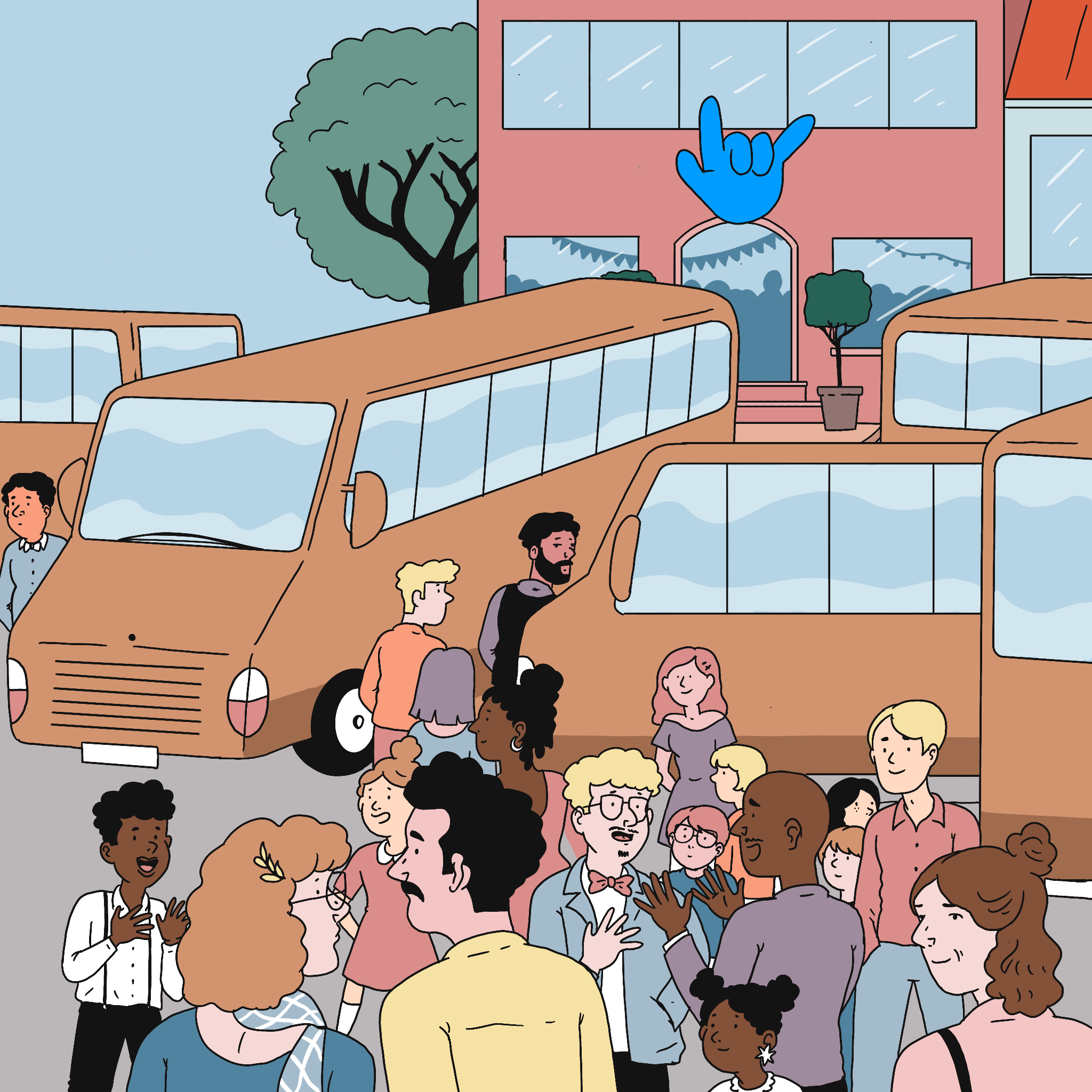 Man kann ausdrücken, dass verschiedene Busse in einer Reihe stehen. Dafür führen beide Hände die Proform aus. Eine Hand bewegt zum Beispiel zur Seite.