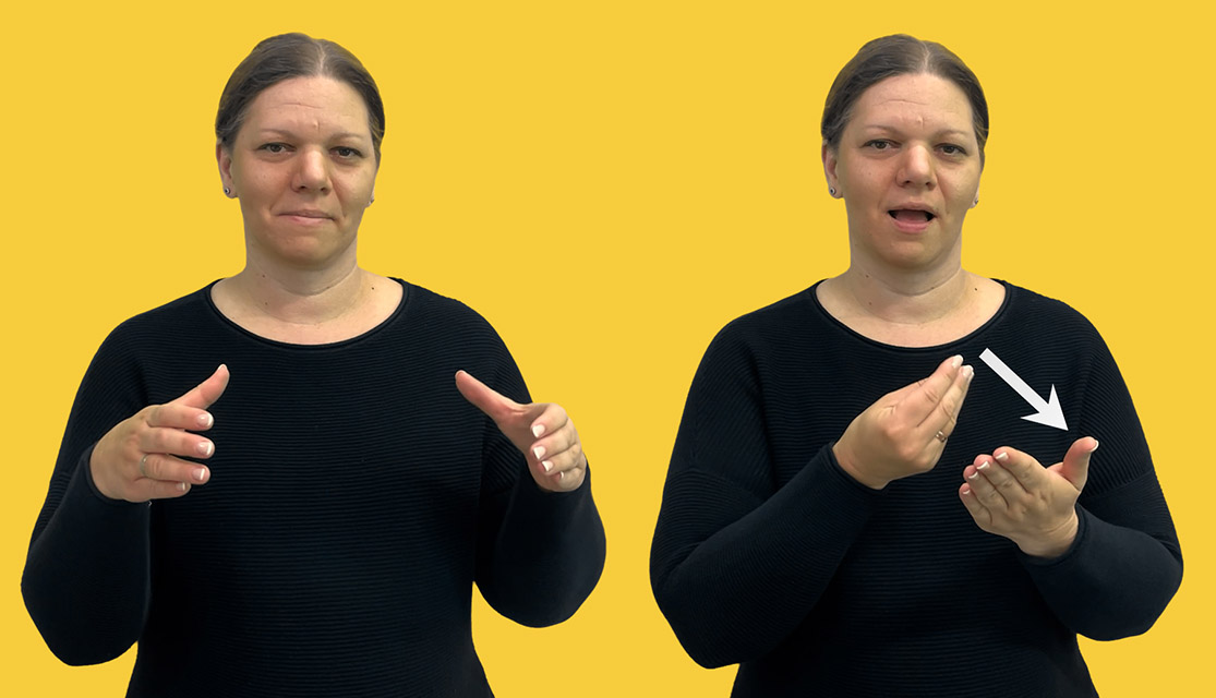 1. Die Gebärde wird am gleichen Ort im Gebärdenraum wiederholt.