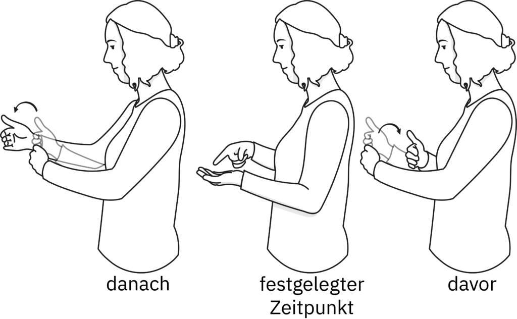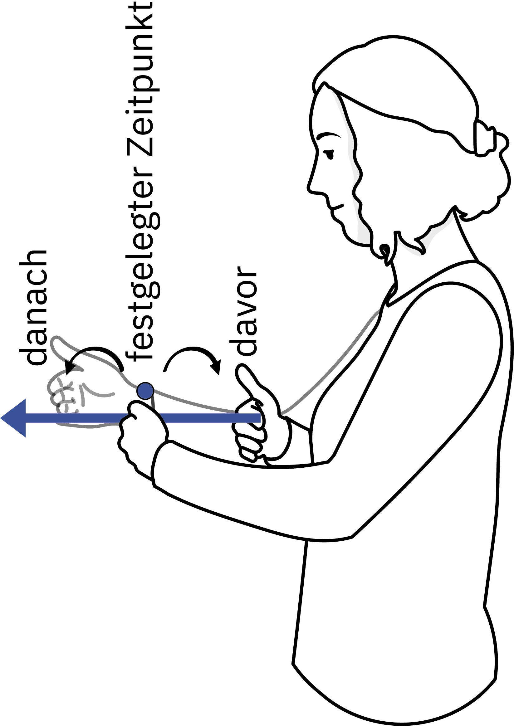 Es gibt noch weitere Möglichkeiten, Zeit im Gebärdenraum zu visualisieren und Ereignisse zeitlich zu verorten.